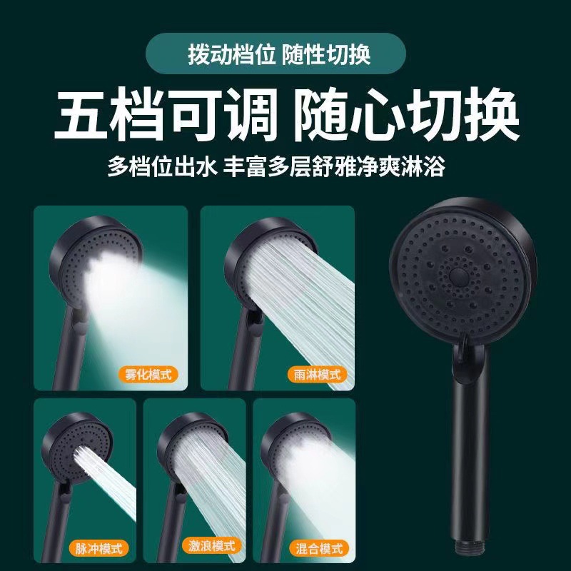 ネット赤黒武士黒五段増圧シャワーヘッド一ボタン止水手持ち浴室家庭用シャワーヘッド
