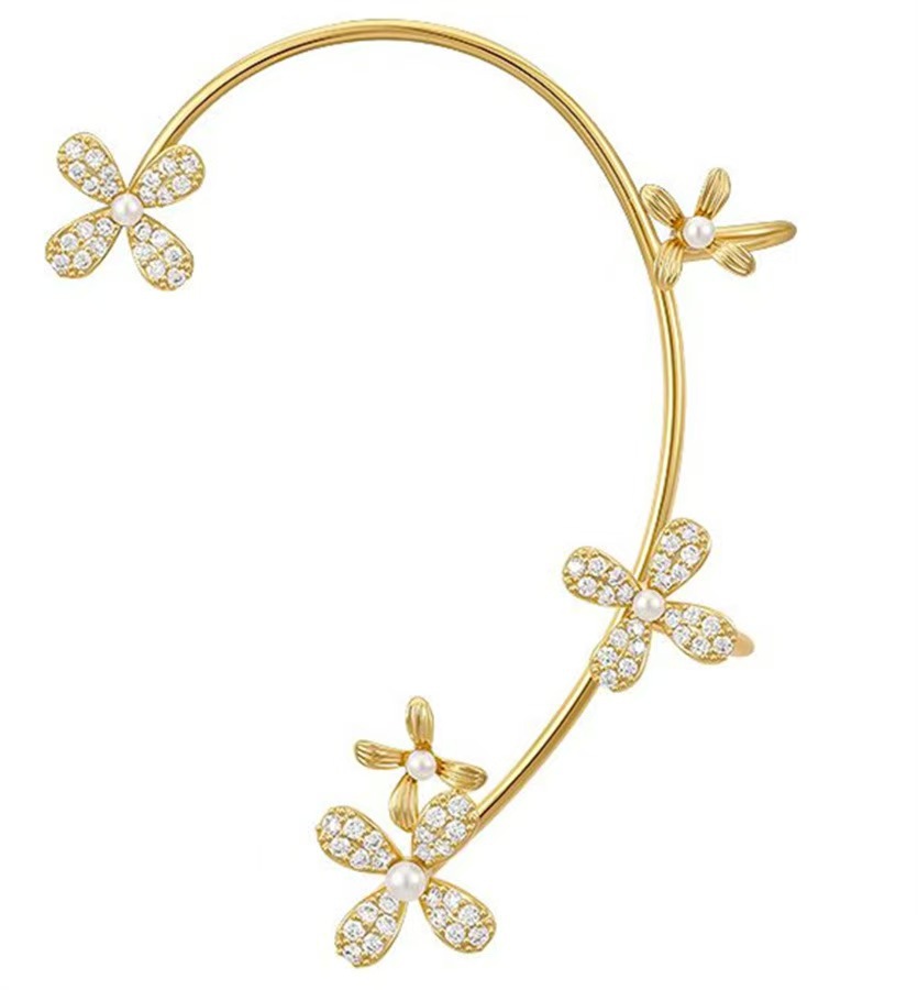 クロスボーダーの透かし彫りの蝶の耳掛けのフリンジの花の雪の麦の穂の翼の一体の高級感の耳の穴のイヤリングがありません。