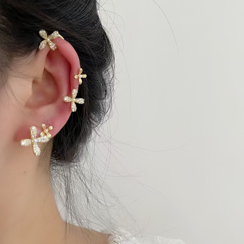 国境を越えてドリル蝶耳掛け百合新型耳穴なし一体式耳クリップネット赤気質ファッション耳飾り卸売り