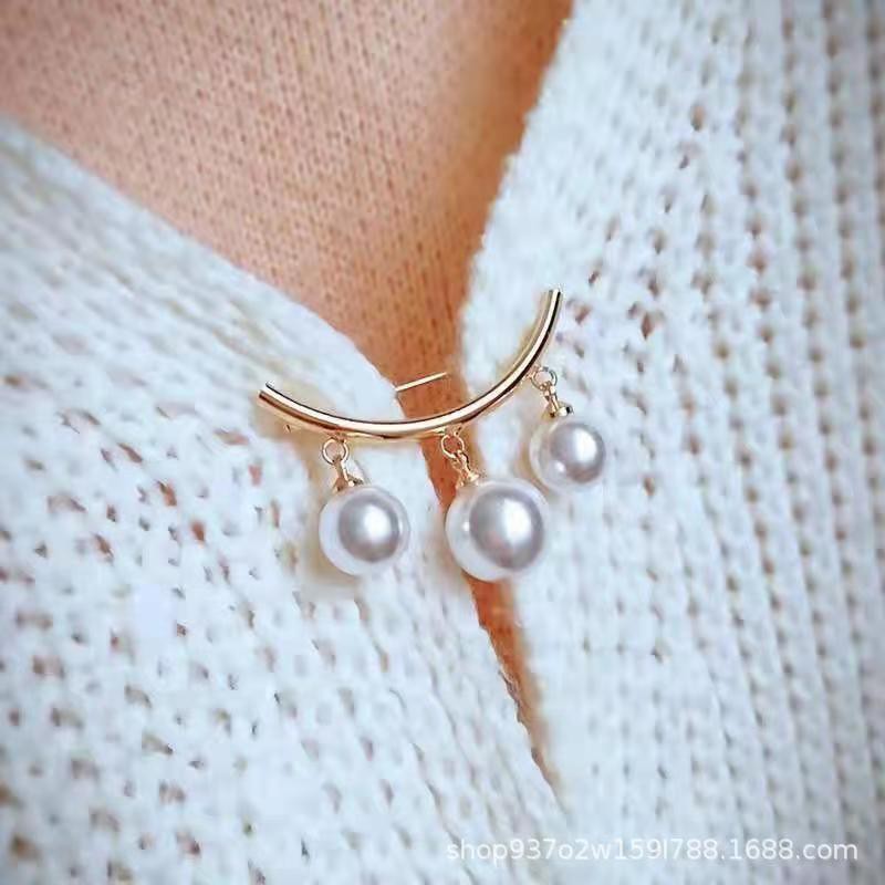 韓国版のシンプルでファッション的な固定光防止シャツの合金真珠のダイヤモンドの蝶結びのブローチのピンのアクセサリー