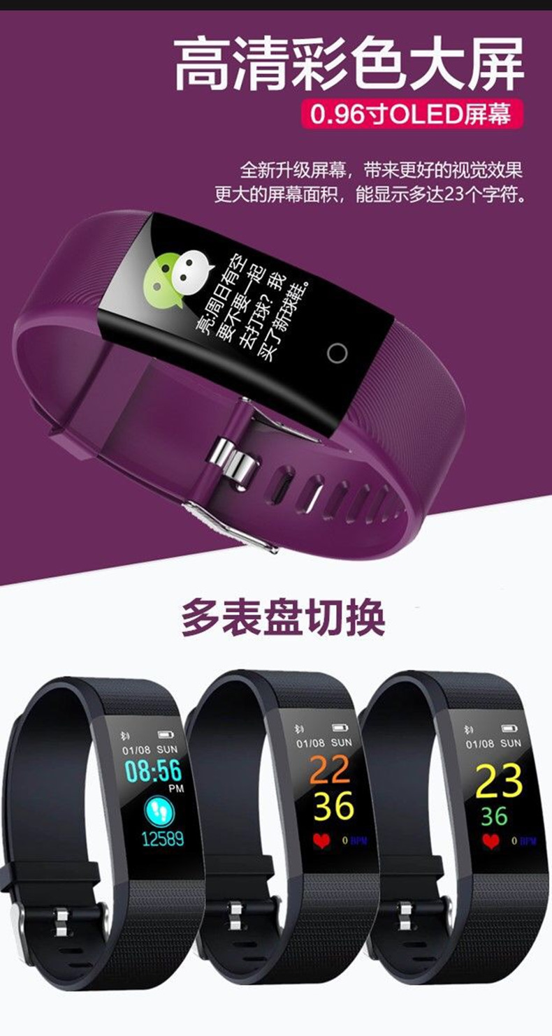 知能手環115plus血圧心拍数防水運動手環カラースクリーン手環腕時計工場直販