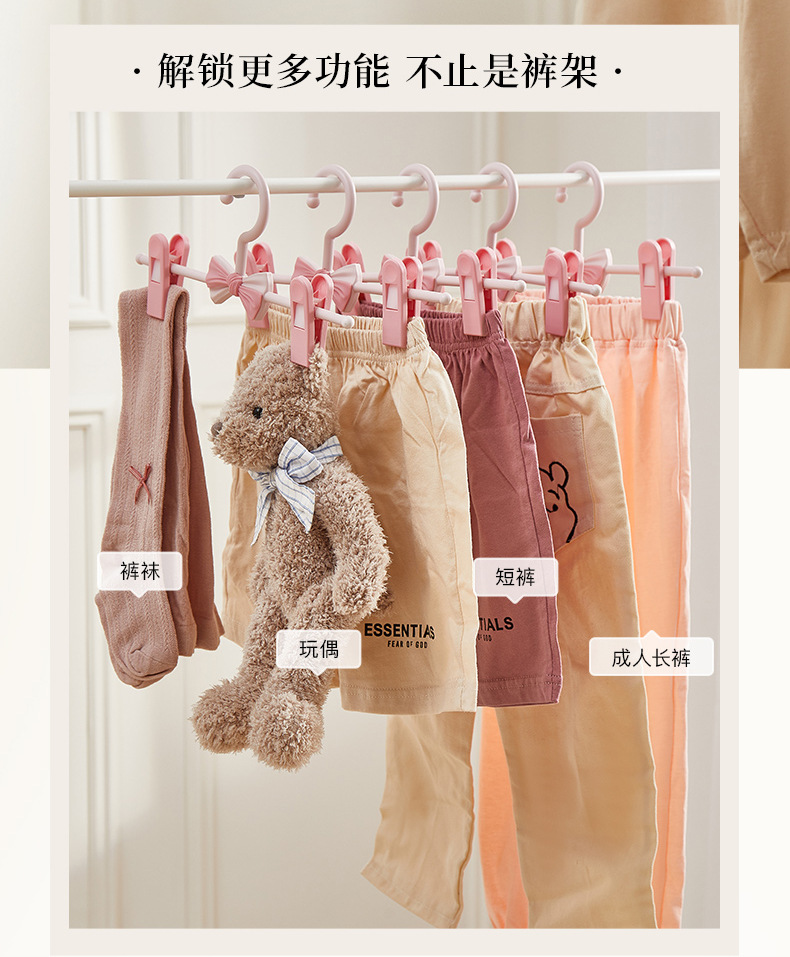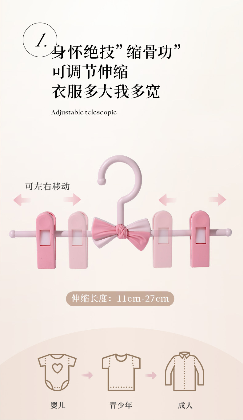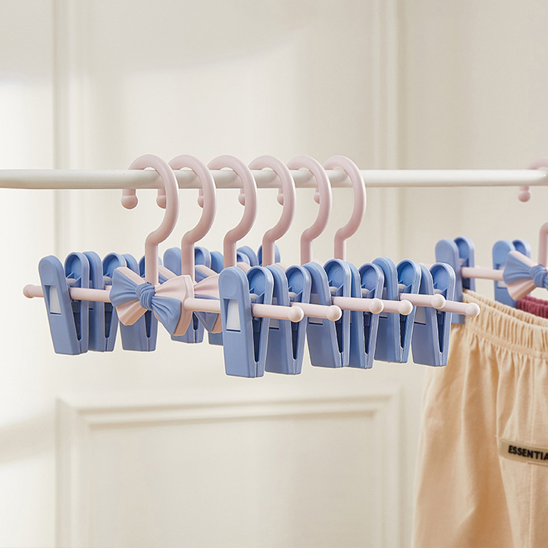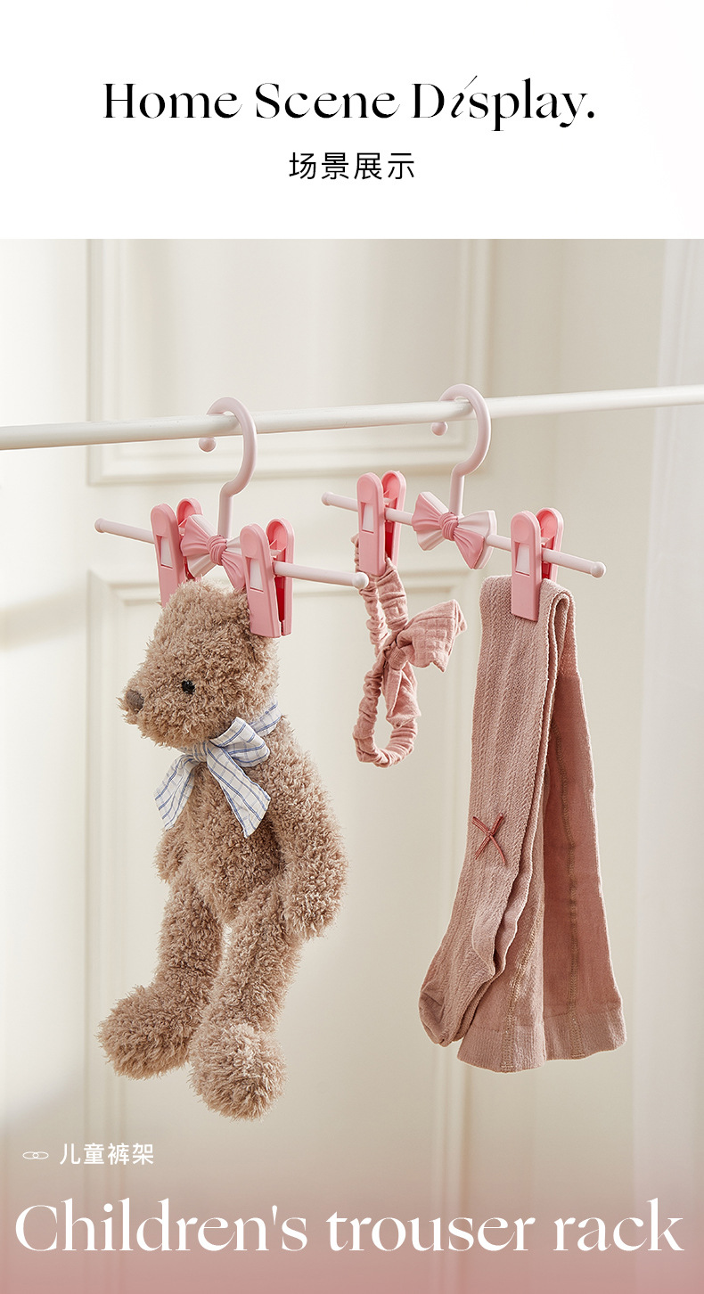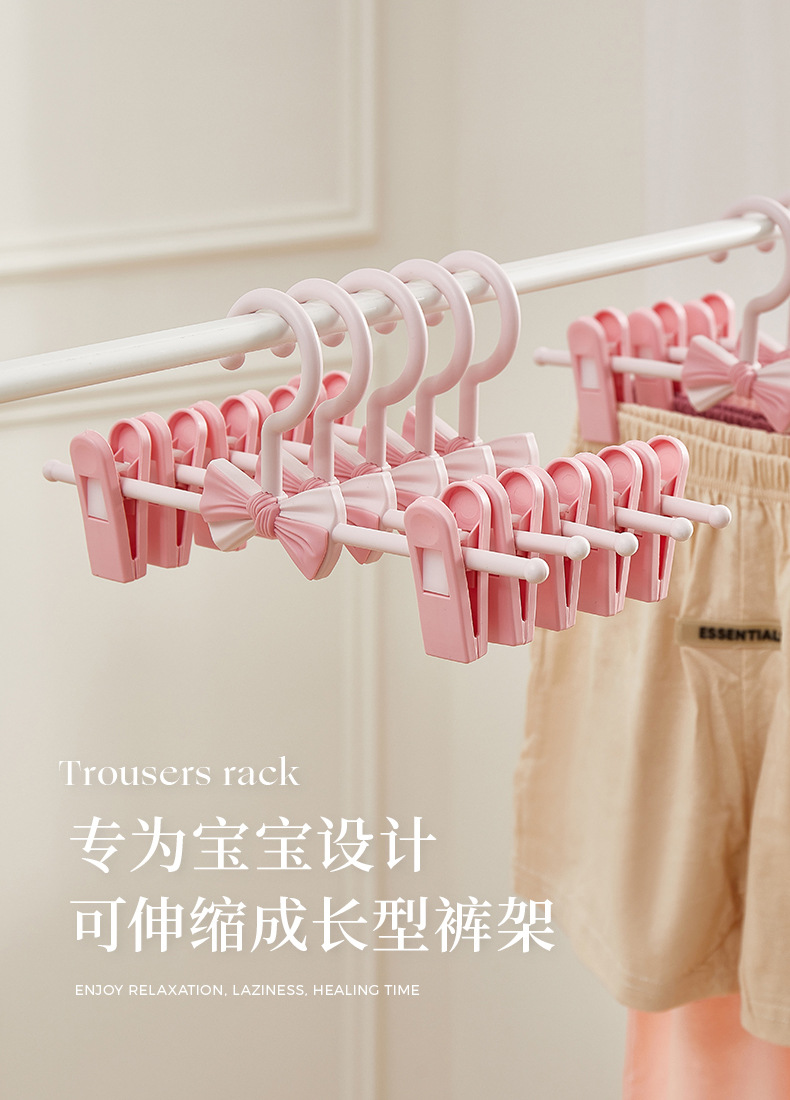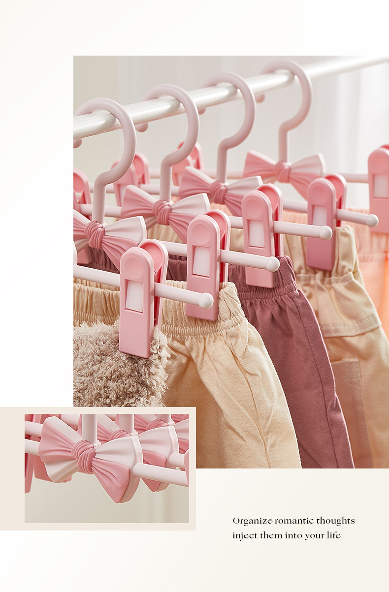 子供のズボンの棚は大人の赤ちゃんのかわいい滑り止めハンガーの蝶結びのスカートを挟んで家庭用のクリップのハンガーを調節できます。