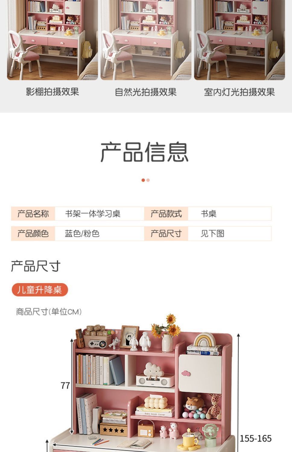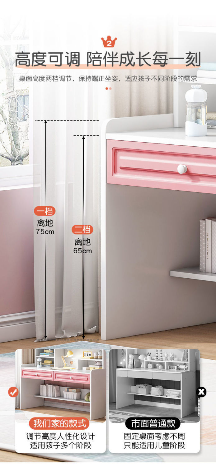 子供の学習机は家庭用机の本棚を昇降させることができます。