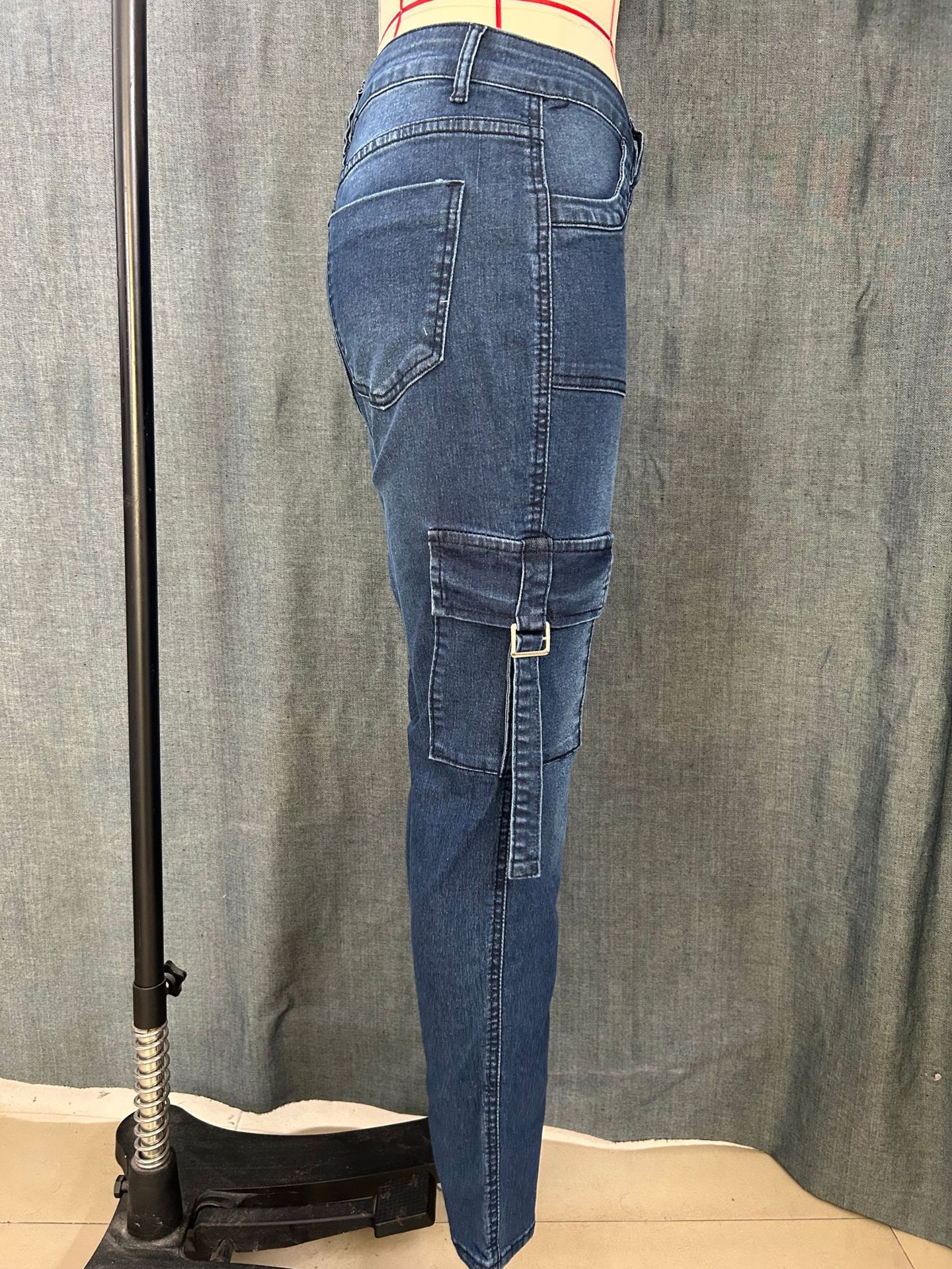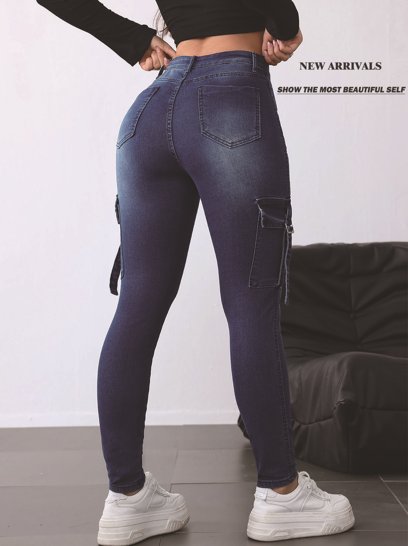 紧身休闲时尚打底裤高腰长裤Y2k 街头潮流牛仔裤提臀口袋设计新款