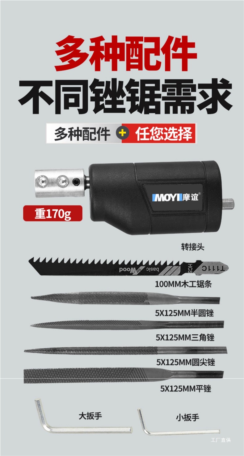 仕様 電動ドリルをヤスリとノコギリに標準装備,電動ドリルファイルソー標準+丸先端ファイル,電動ドリルファイルソーは丸先ヤスリ+三角ヤスリを標準装備