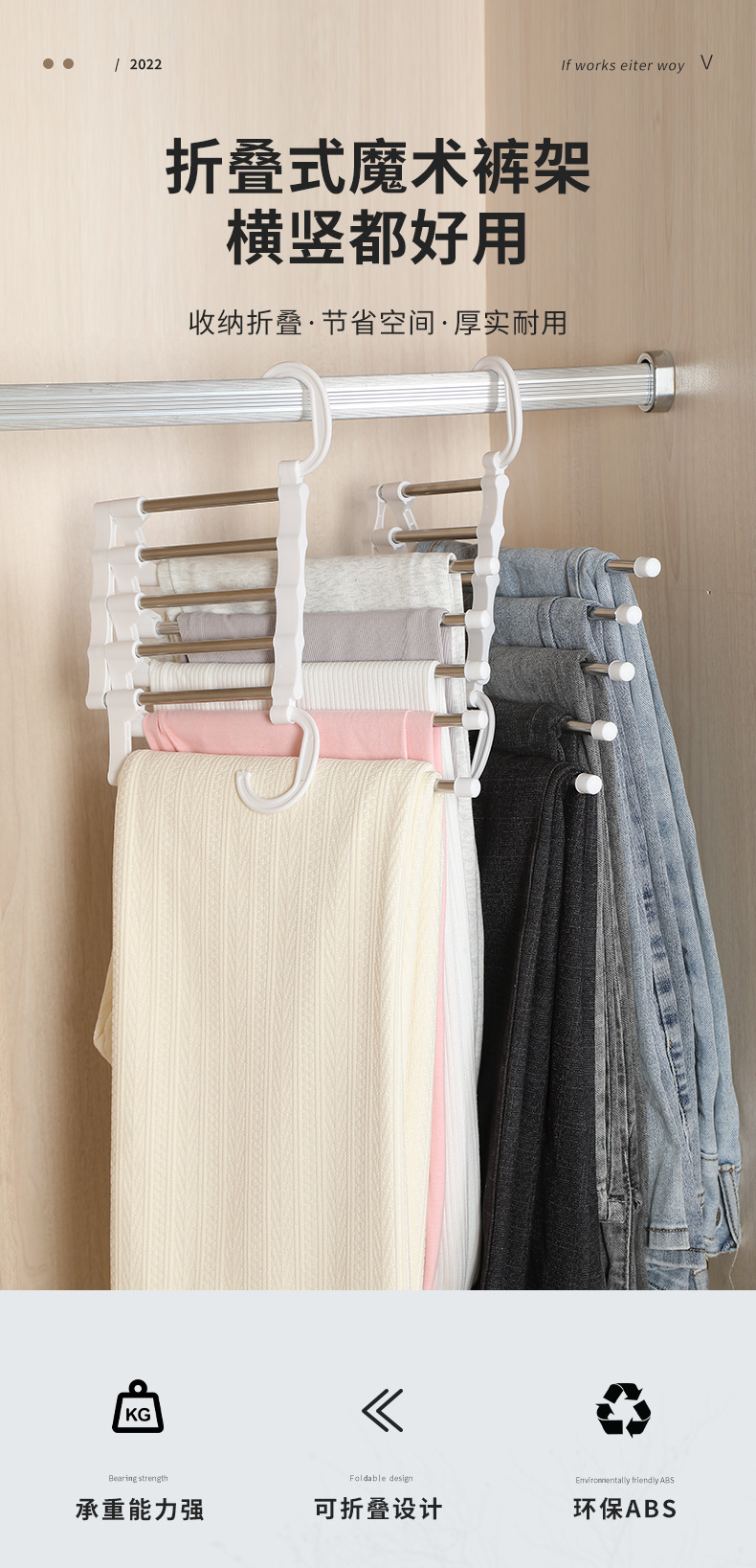 折叠裤架多功能多层裤子衣架家用魔术无痕裤夹衣柜收纳神器裤挂架