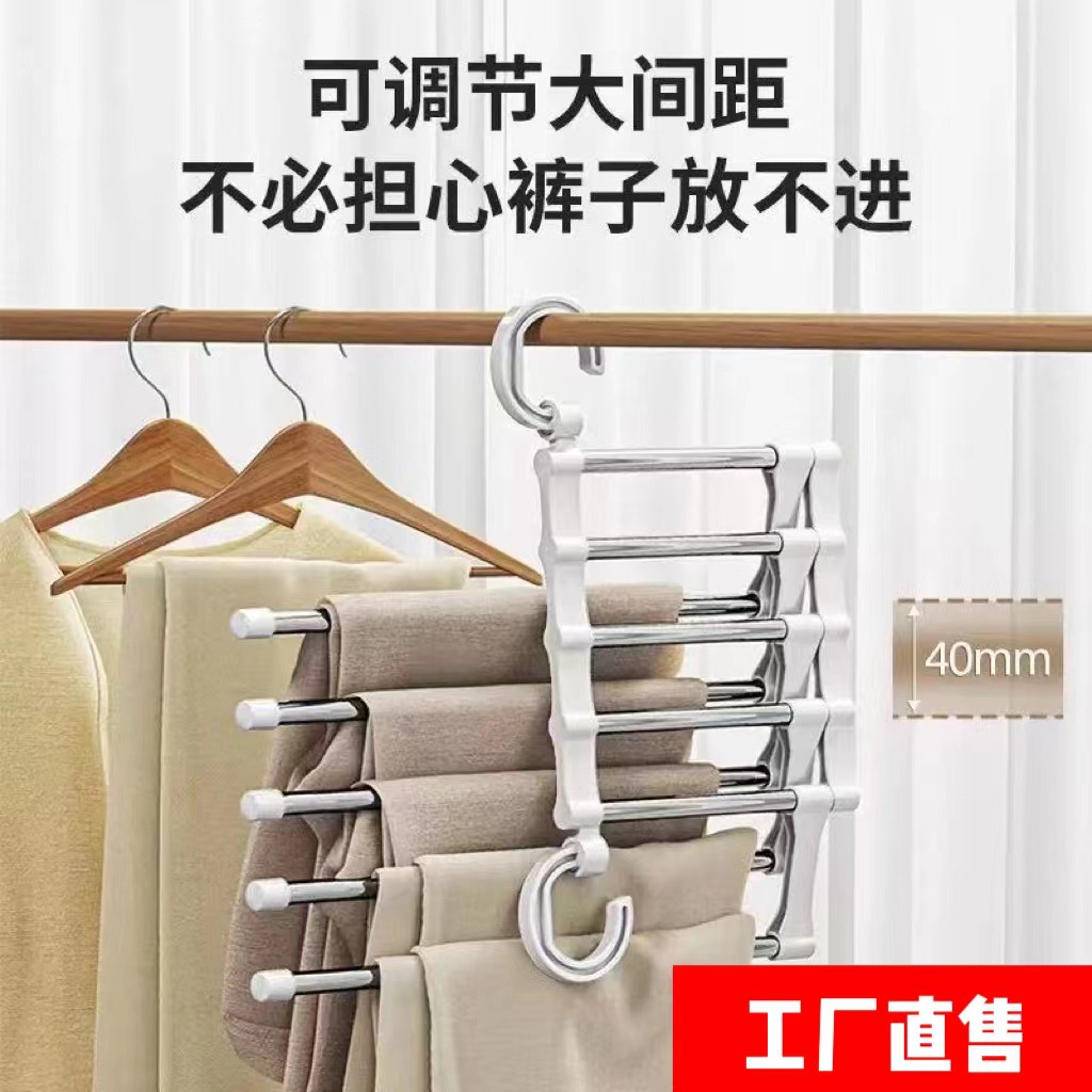 直销现货大号折叠裤架不锈钢多功能衣架魔术裤架五层收纳伸缩裤架