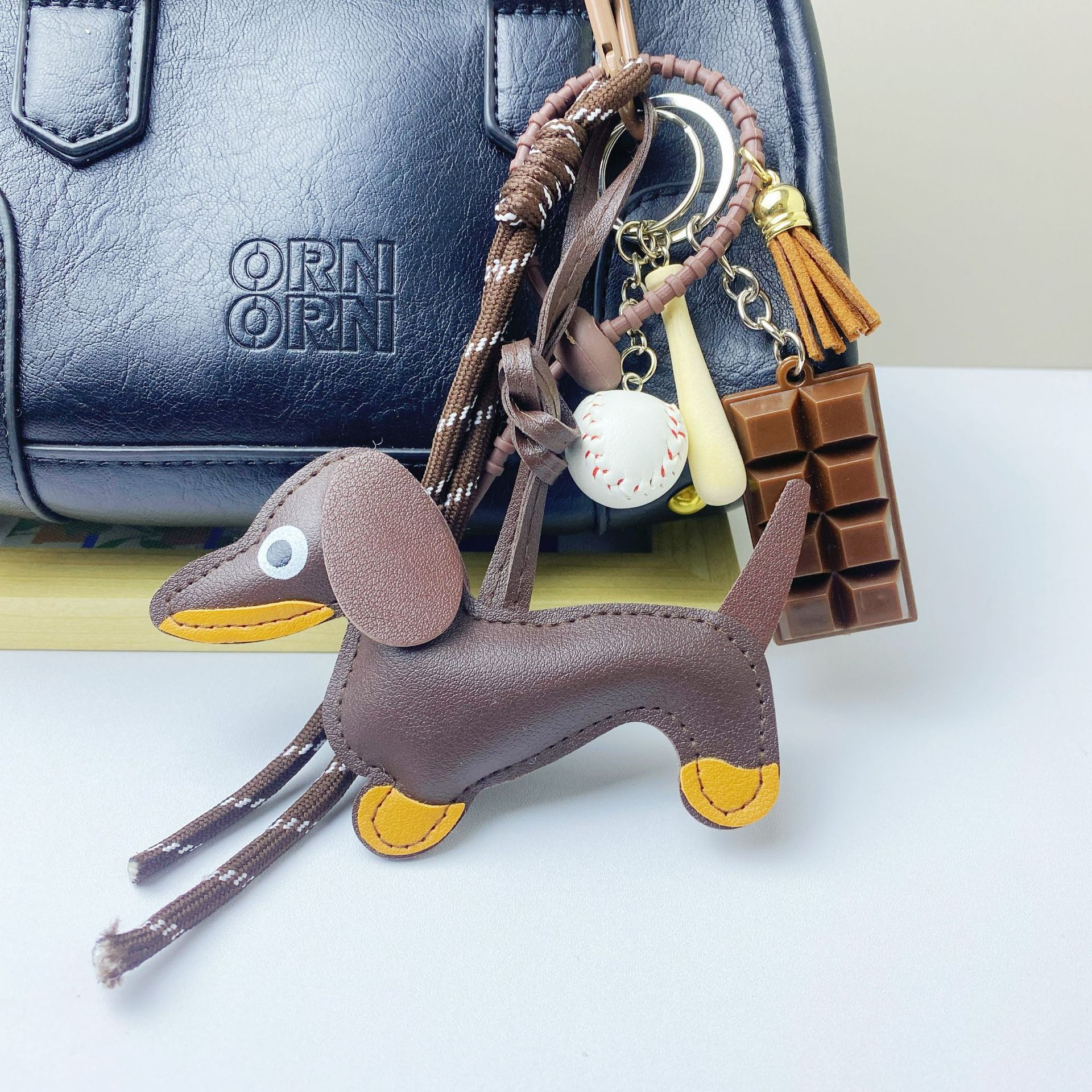 韓国版 diy ダックスフント犬レザーペンダントかわいい ins 子犬バッグペンダントストラップカップル車のペンダント在庫あり