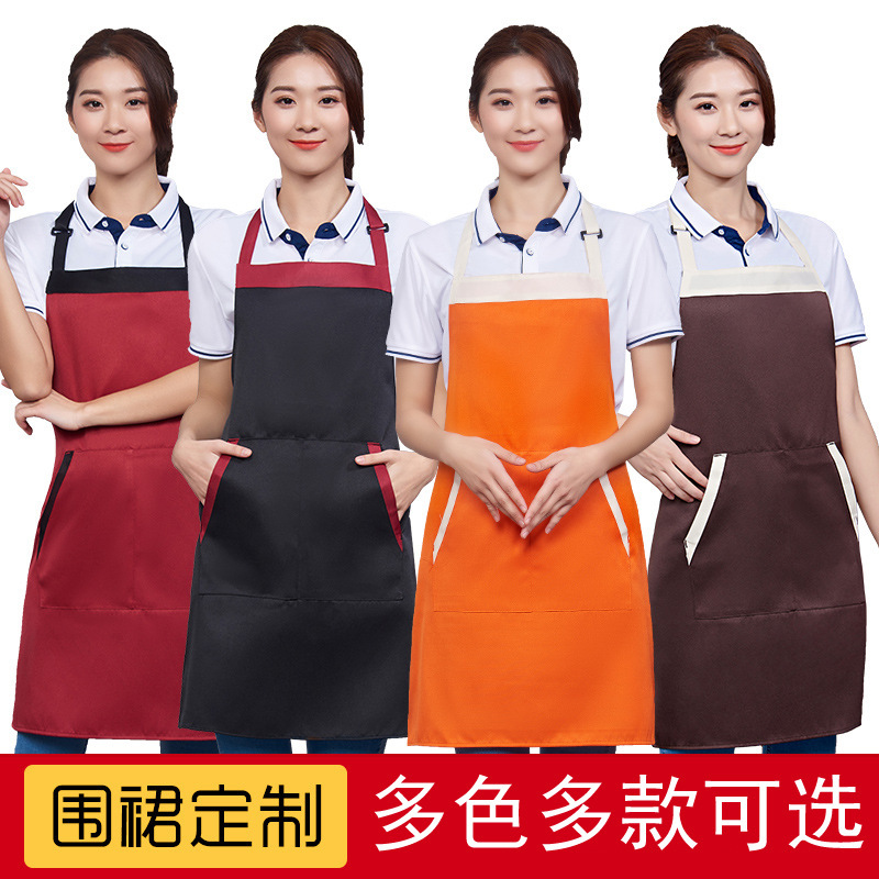キャンバスエプロンロゴ印字飲食専用ミルクティー店花屋コーヒーアイロン師防水作業服女性カスタマイズ