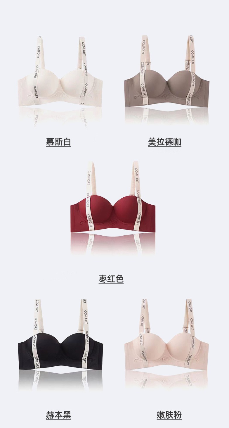国风浮雕印花宽肩无痕内衣女上托提拉聚拢收副乳女士文胸美背