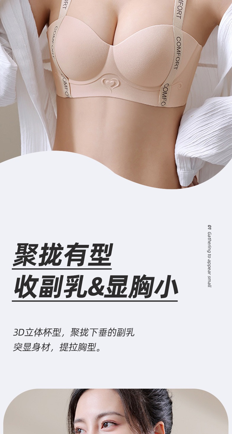 无痕提拉交叉吊带美背文胸女小胸显大无钢圈加厚固定杯防下垂文胸