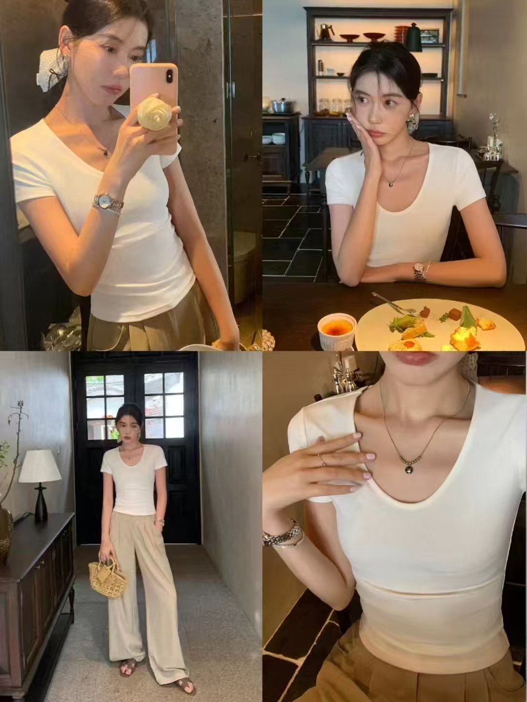 _ _ _ クロスボーダー正肩半袖tシャツ女性新作夏白色インナー半袖上着スリム