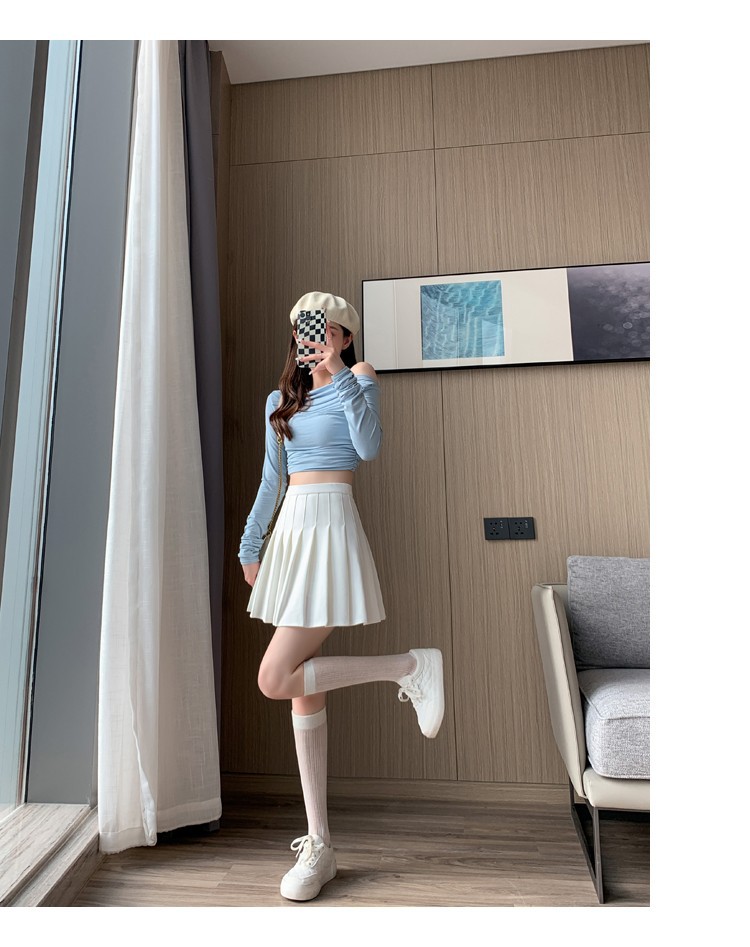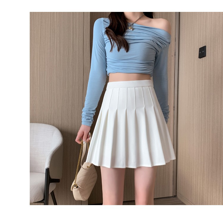 Sweetheart Meet ダーク量産ガール 3 色オフショルダー シャツ + ハイウエスト スカート ツーピース スーツ