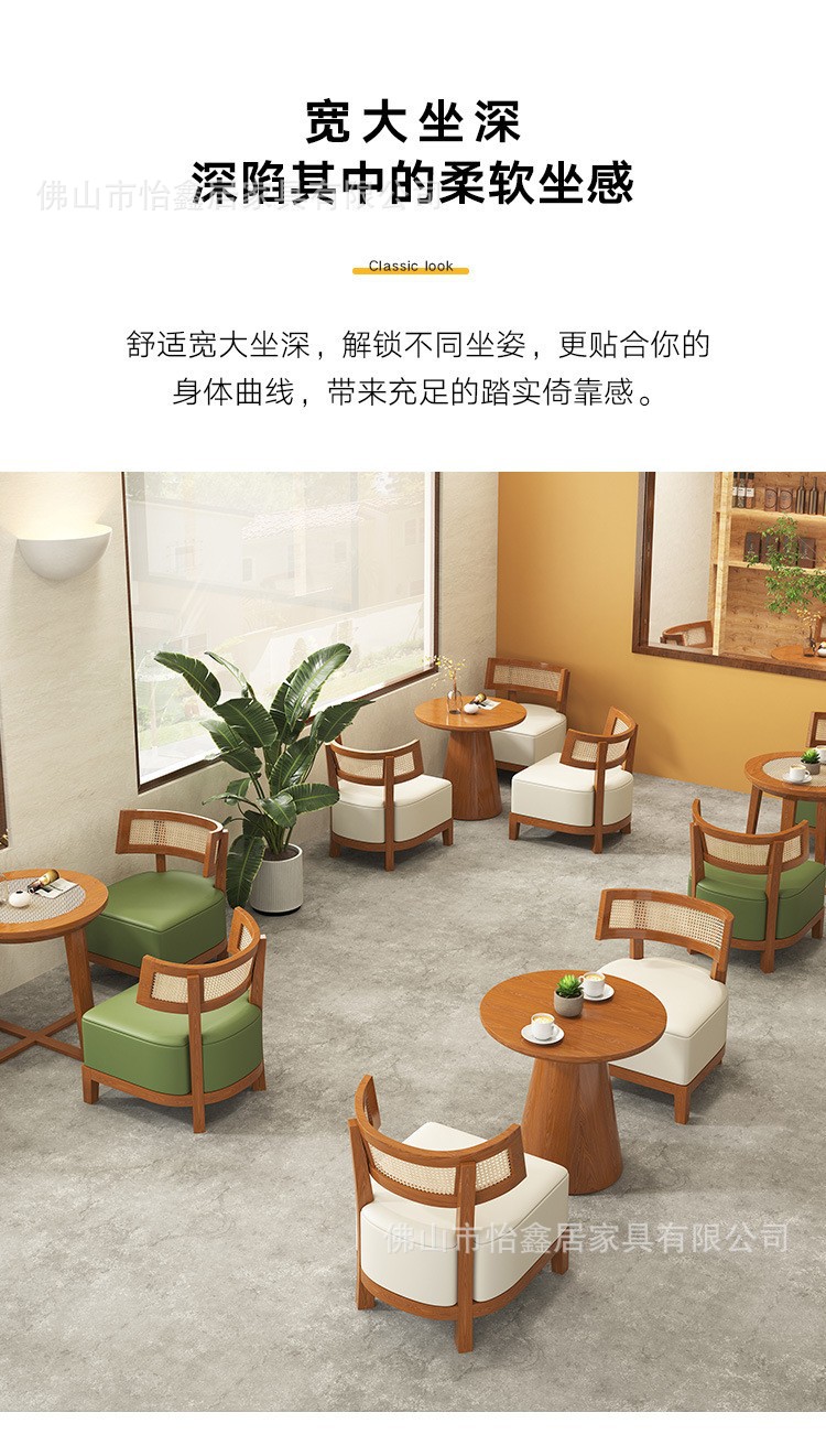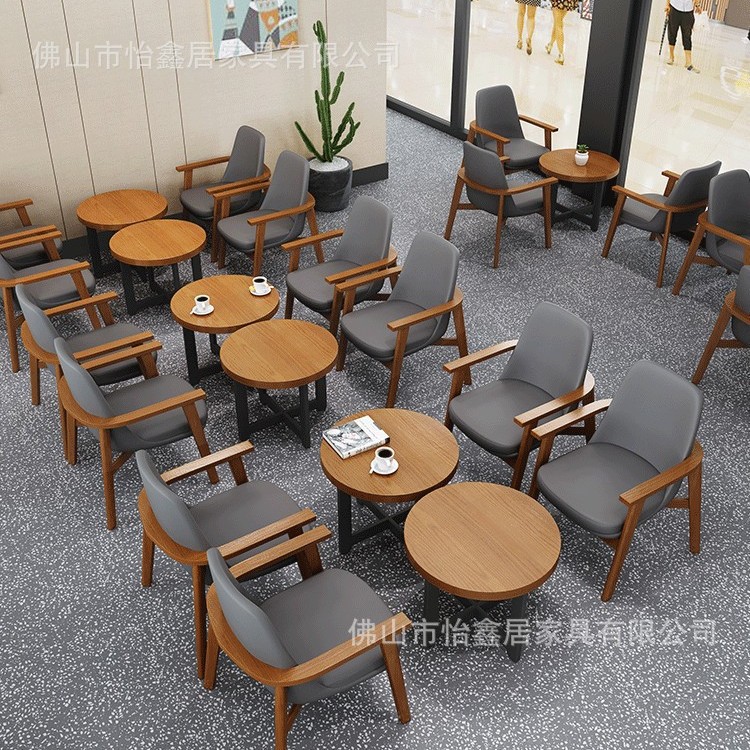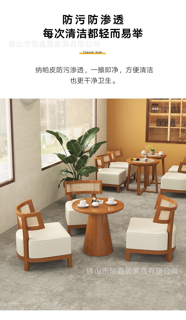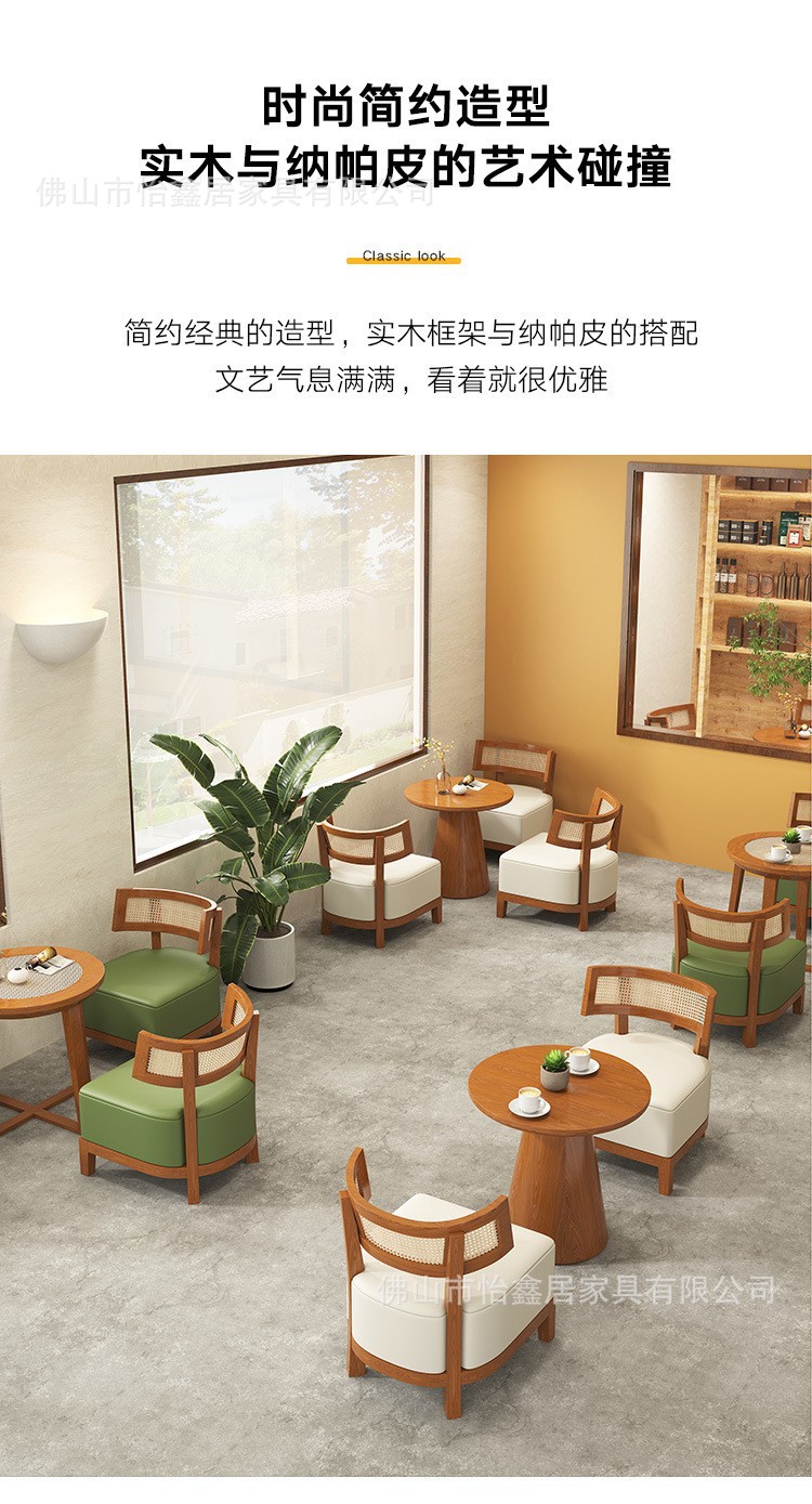 实木休闲商用休息区接待洽谈沙发书吧咖啡厅餐饮店奶茶店桌椅组合