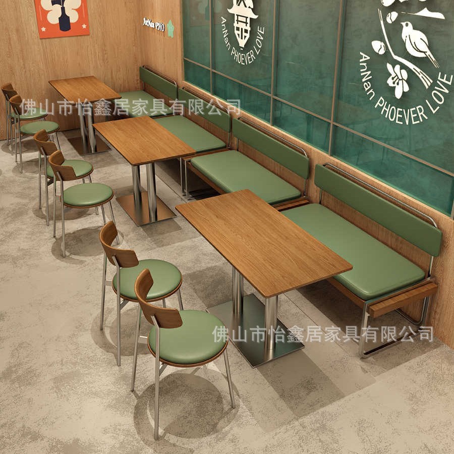 カフェ、ミルクティーショップ、洋食レストラン、ステンレス製のテーブルと椅子の組み合わせ、東南アジアの香港風ティーレストラン、壁に取り付けられたソフトパッケージのカウチ