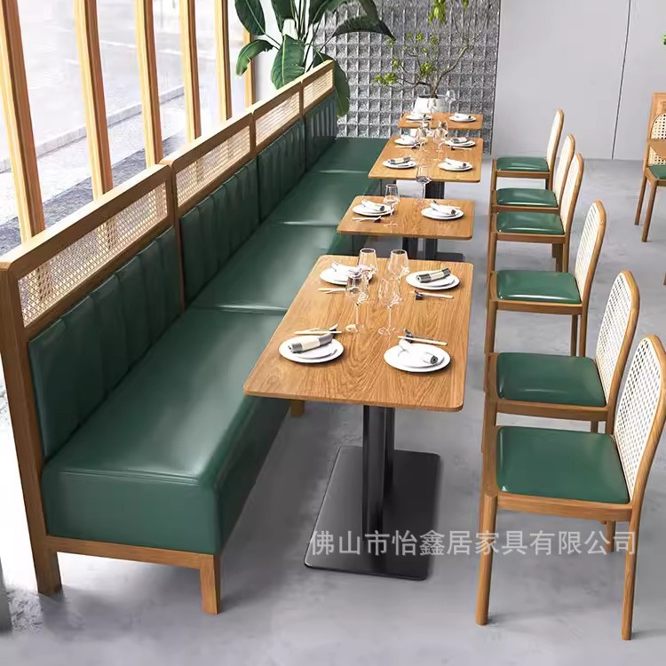 東南アジアのレストランのテーブルと椅子、壁に沿った無垢材の籐の座席、インターネット有名人のタイのレストランのテーブルと椅子の組み合わせ、ミルクティーショップの椅子