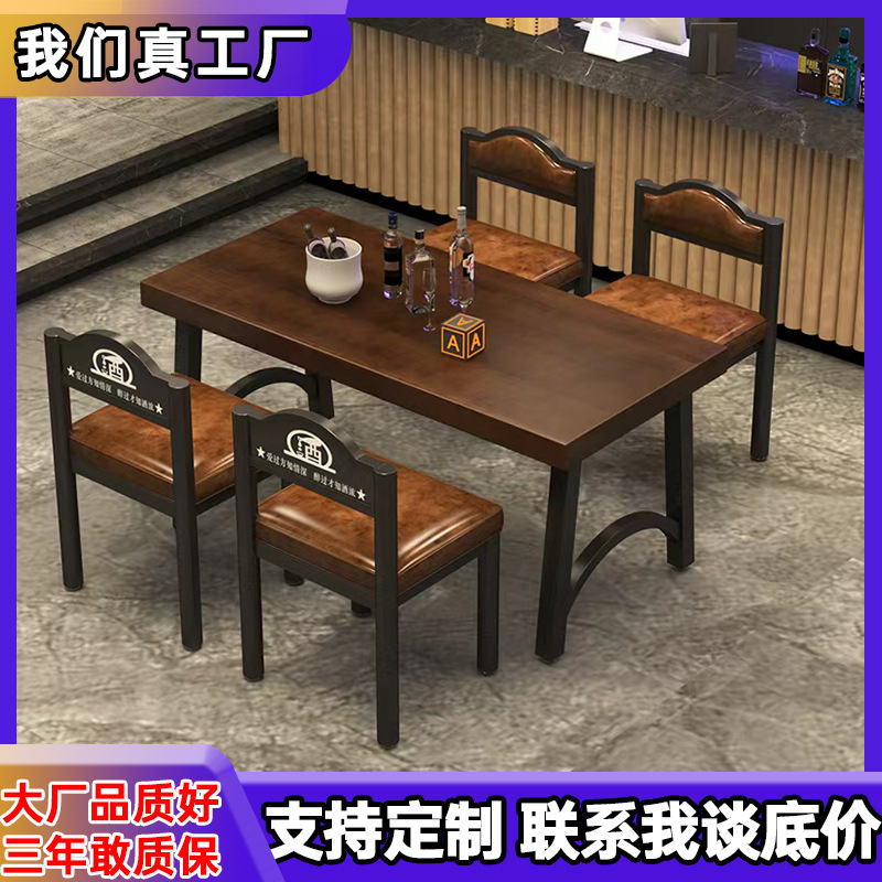 酒吧桌椅组合清吧茶楼工业风咖啡小酒馆餐厅烧烤店实木桌椅