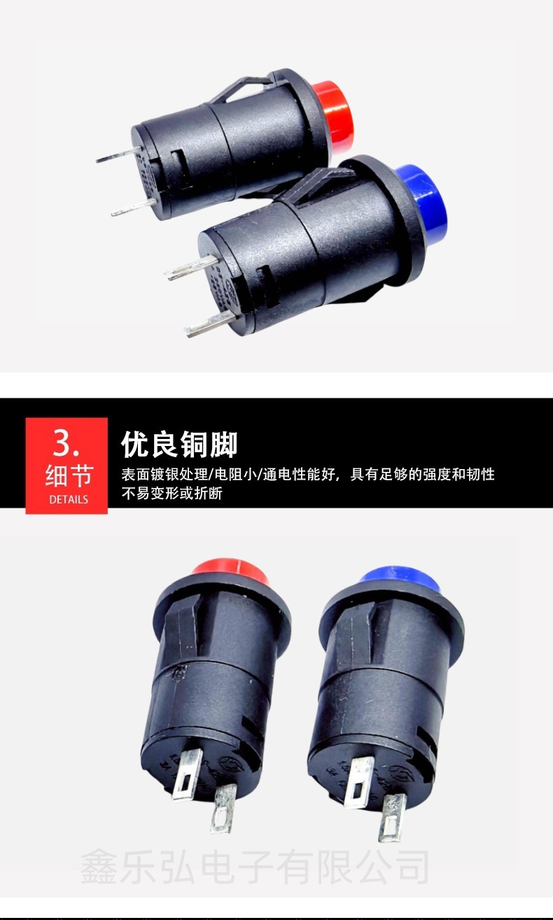 押しボタンスイッチDS-425セルフロックセルフリセット小型円形押しボタンスイッチ金属2足