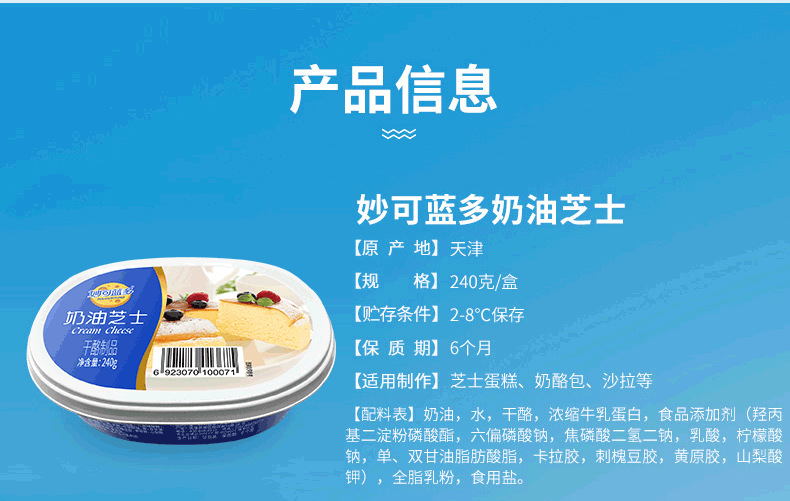 妙可藍多チーズ240gクリームチーズブロック家庭用チーズチーズチーズケーキ材料焙煎原料