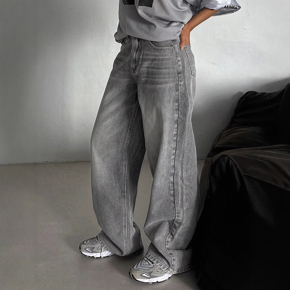 欧美跨境亚马逊外贸美式复古牛仔裤2025新款阔腿宽松直筒长裤子潮