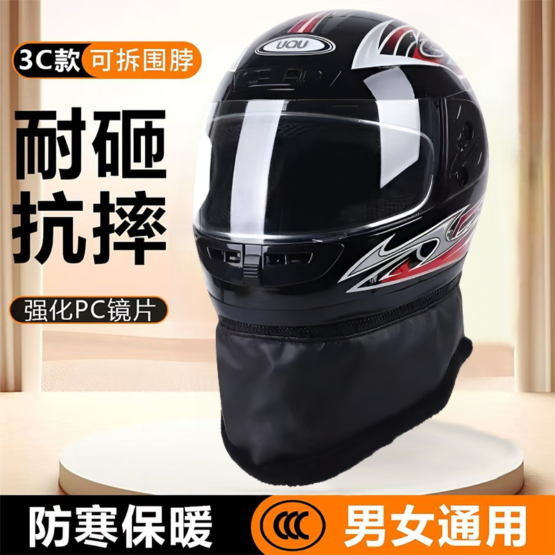 摩托车电动车头盔冬天保暖男女士冬季全盔带可拆围脖款防风安全帽