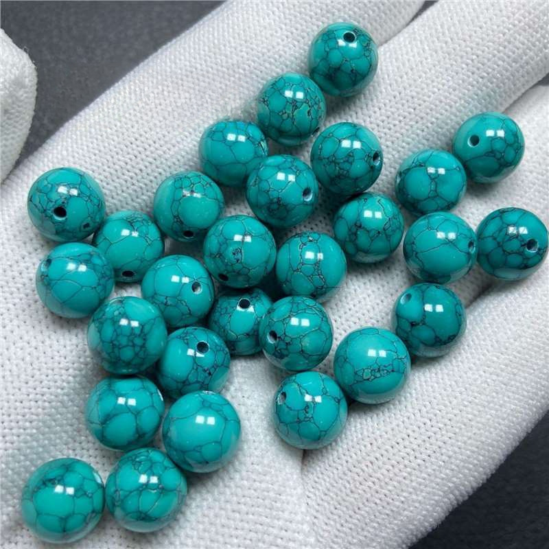 天然原鉱緑松石玉単珠散珠高磁器網花水草烏蘭玉化仏珠文遊緑