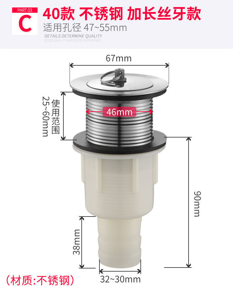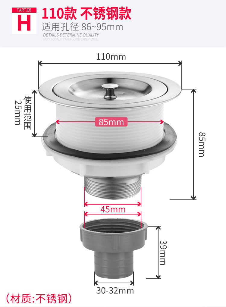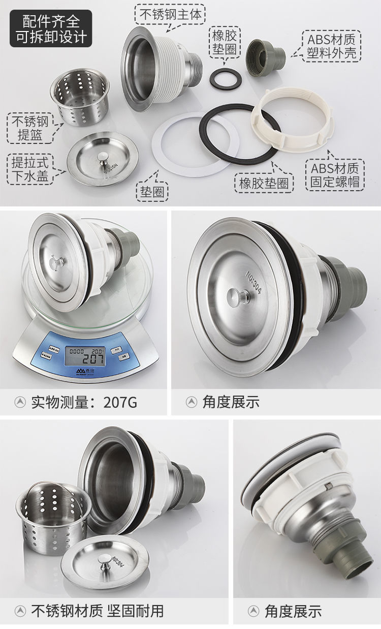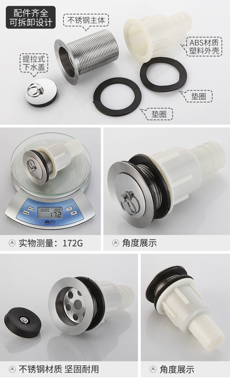 ステンレスモップ池下水器洗濯池下水口モップ盆漏水管セット部品1105工場の供給源