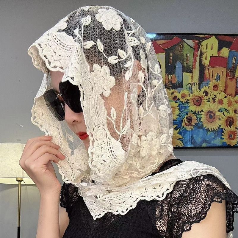 亚马逊圣母头巾教堂礼拜头饰蕾丝镂空三角围巾JERUSALEM新娘头纱