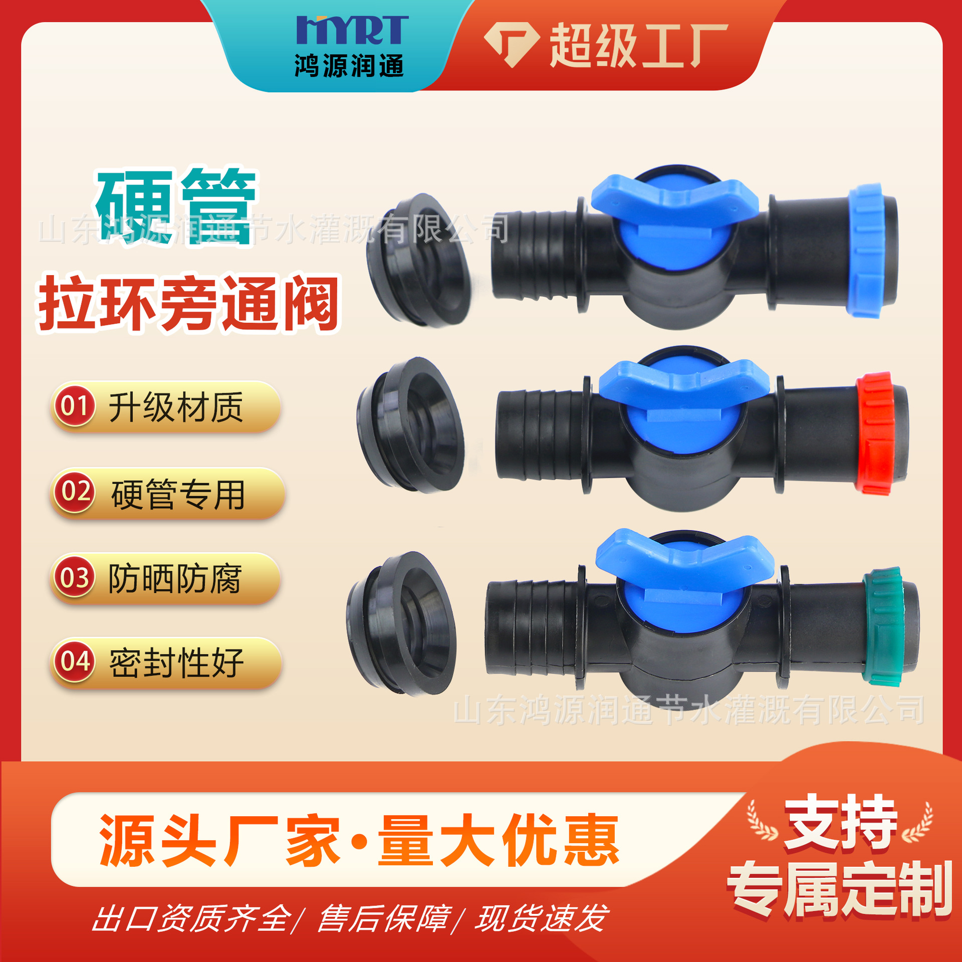 新型PP農業用ハードチューブ点滴灌漑ベルト接続バイパス弁ハードチューブ接続ホース弁