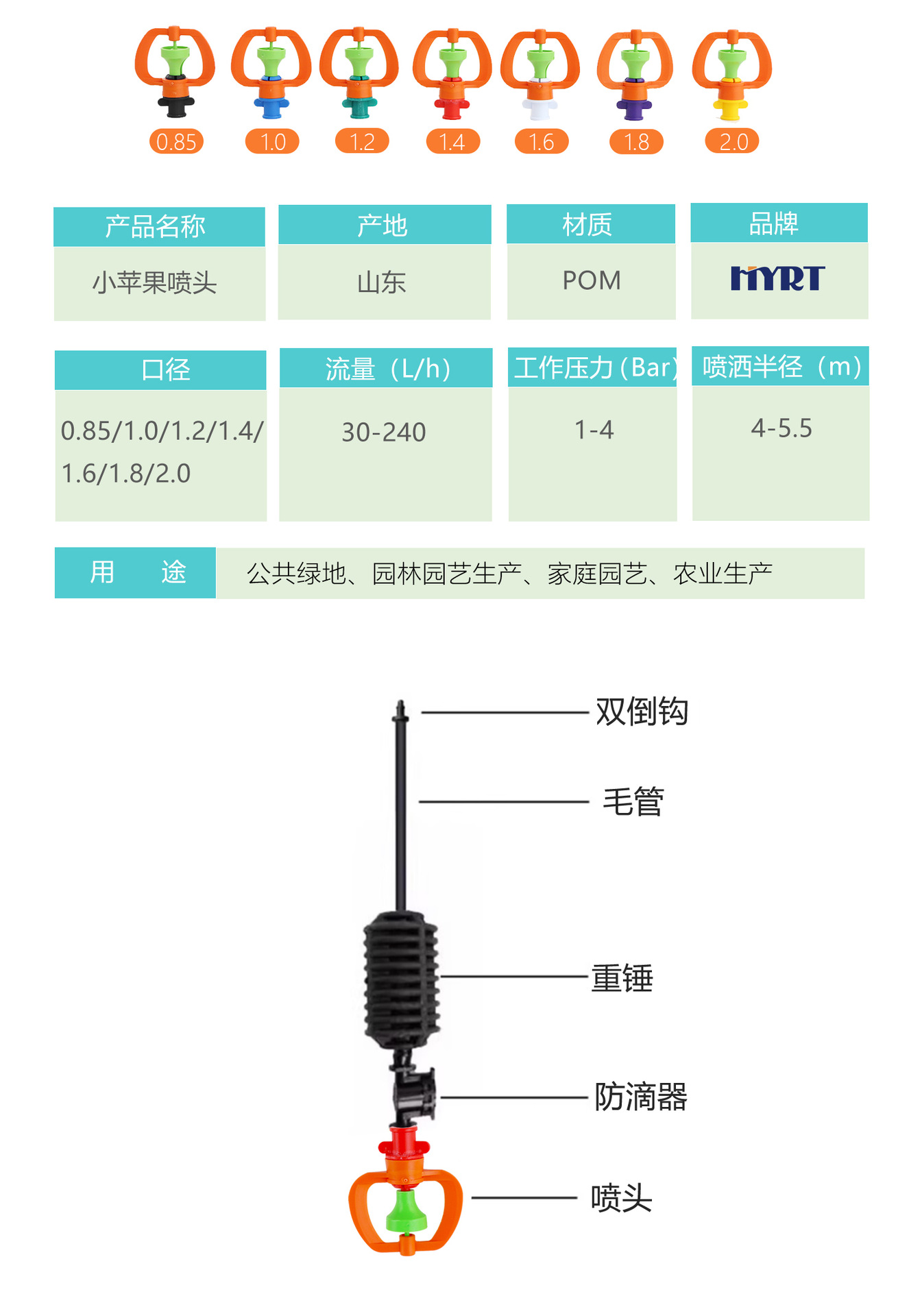 小苹果喷头吊倒挂微喷灯笼喷头灌溉农业旋转大流量360度喷洒