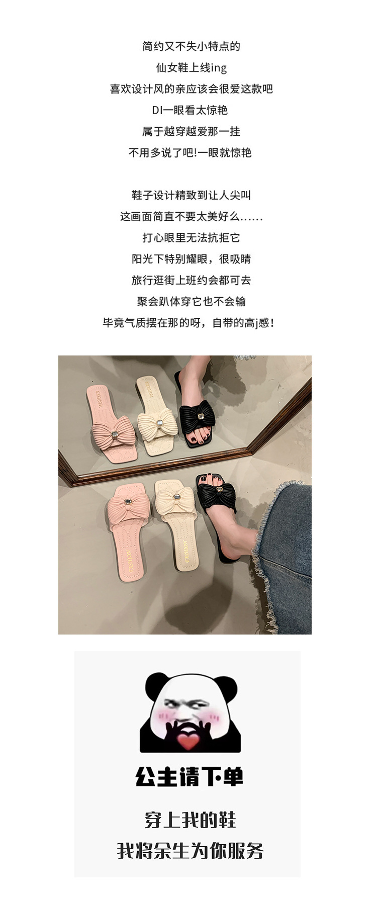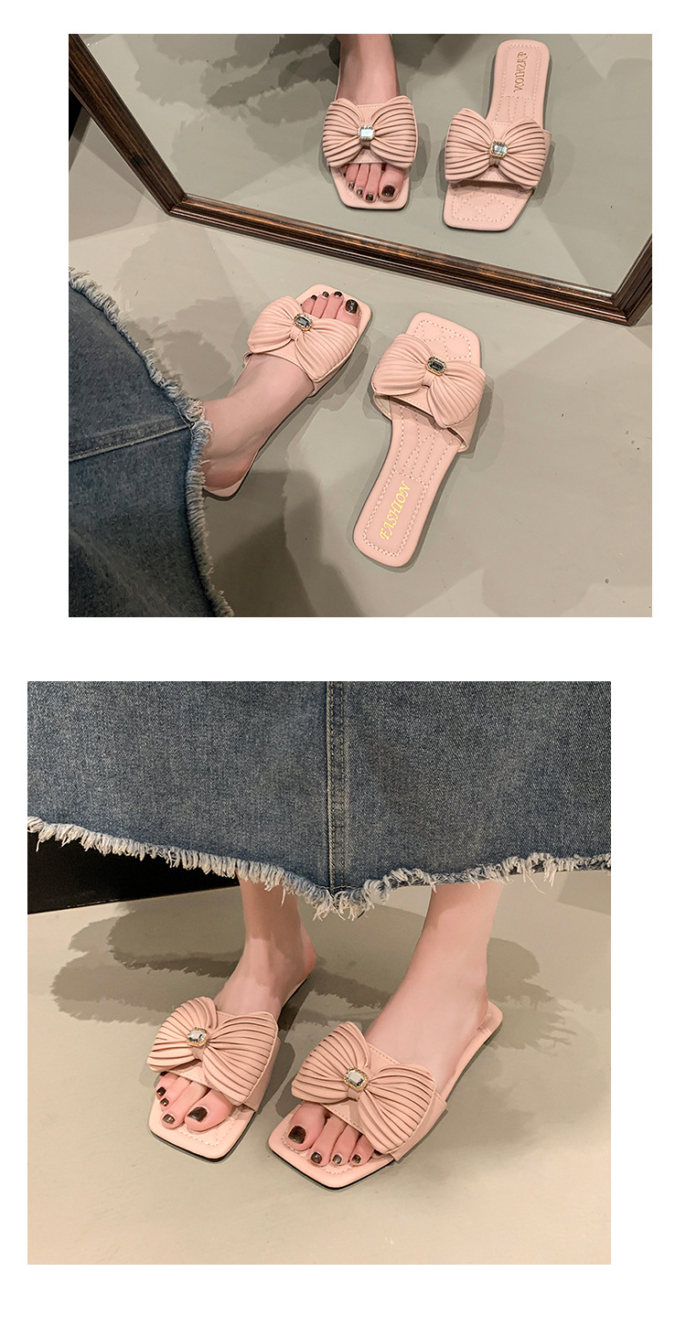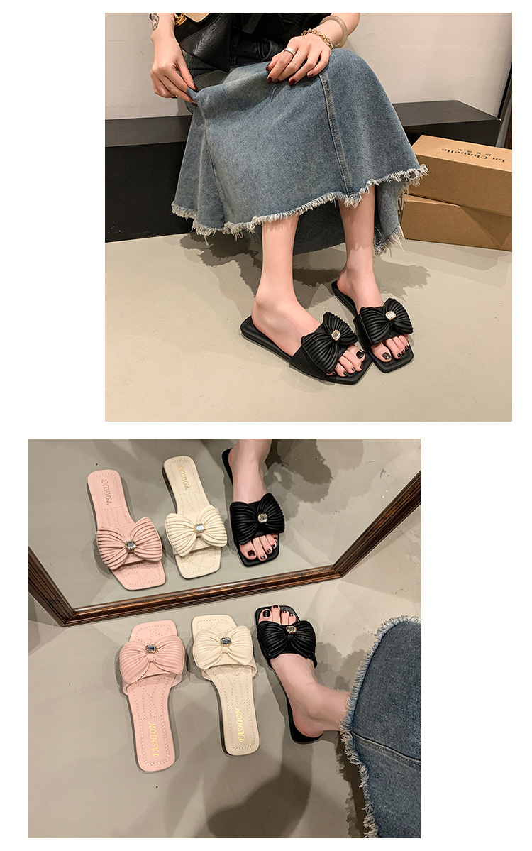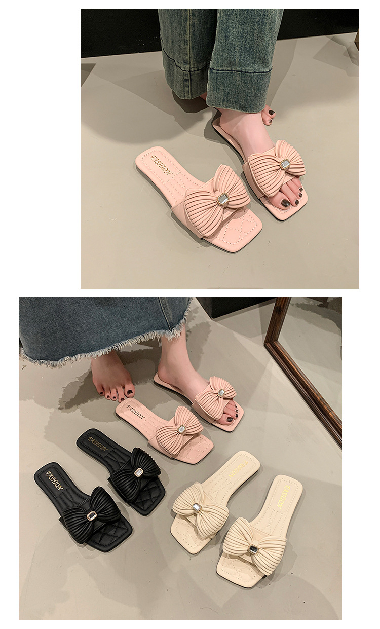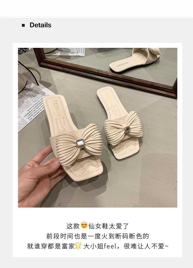 外国貿易の大きいサイズの平底のスリッパの女性の2025夏の新型の蝶結びの1字の百合のファッションは外を引きずって女性のファッションを着ます。