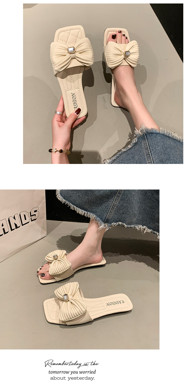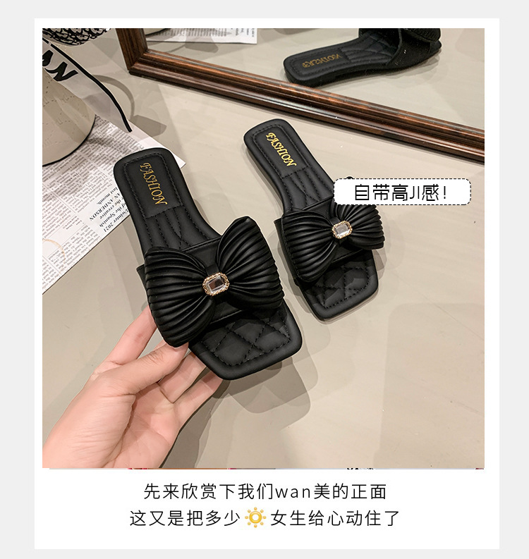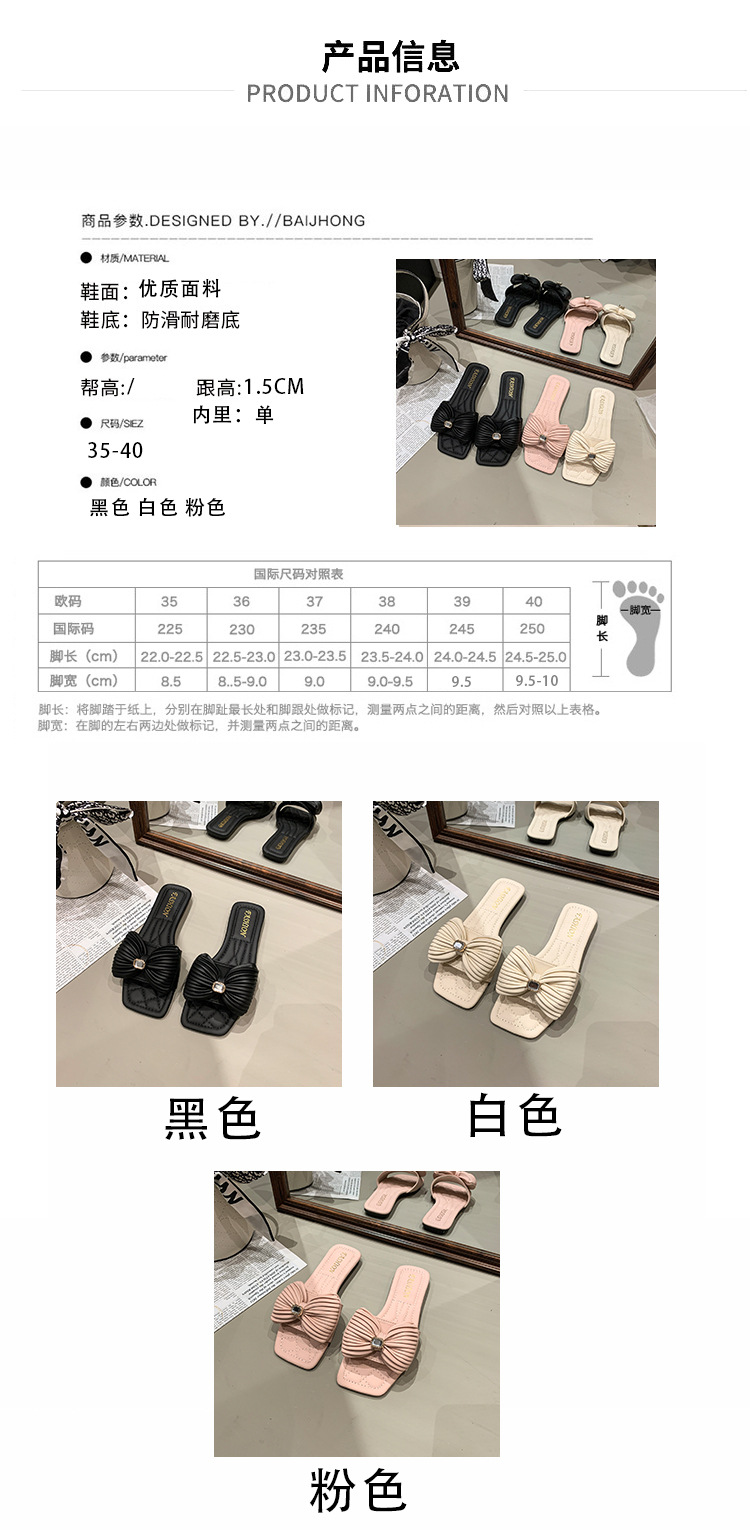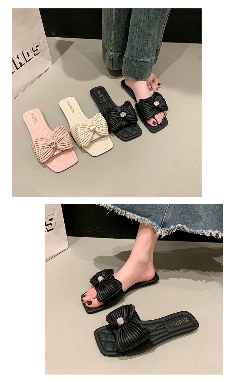 外国貿易の大きいサイズの平底のスリッパの女性の2025夏の新型の蝶結びの1字の百合のファッションは外を引きずって女性のファッションを着ます。