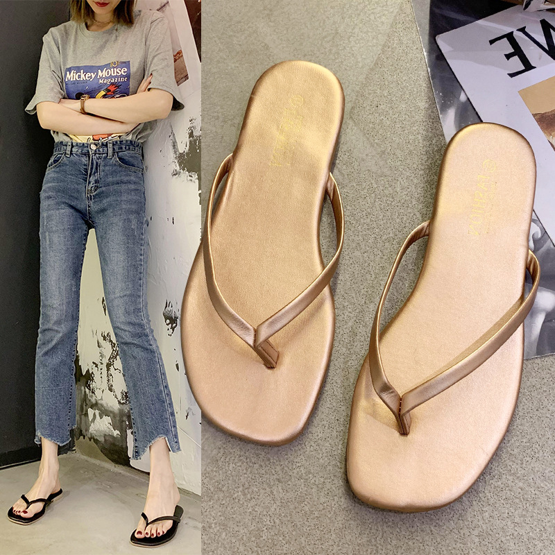夏の韓国版の純色のシンプルな人の字のスリッパの女性のファッションの平底の外は足の指の海辺の女性の冷たいスリッパのメーカーを挟みます。