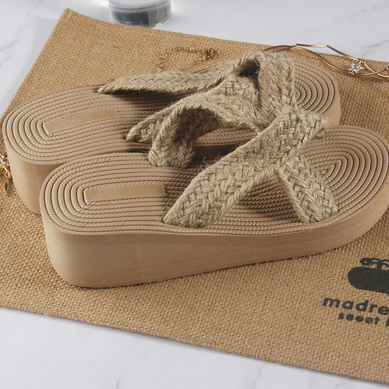 クロスボーダー新作 レディース 厚底サンダル 外履き ヒール付きサンダル ファッション エスニック風 麻縄風サンダル