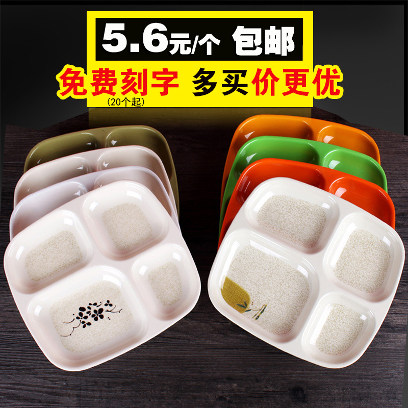 厚みのあるファーストフードプレート、模造磁器ディナープレート、4コンパートメントの正方形プラスチックファーストフードプレート、メラミン食器、コンパートメントプレート、食堂ご飯B&