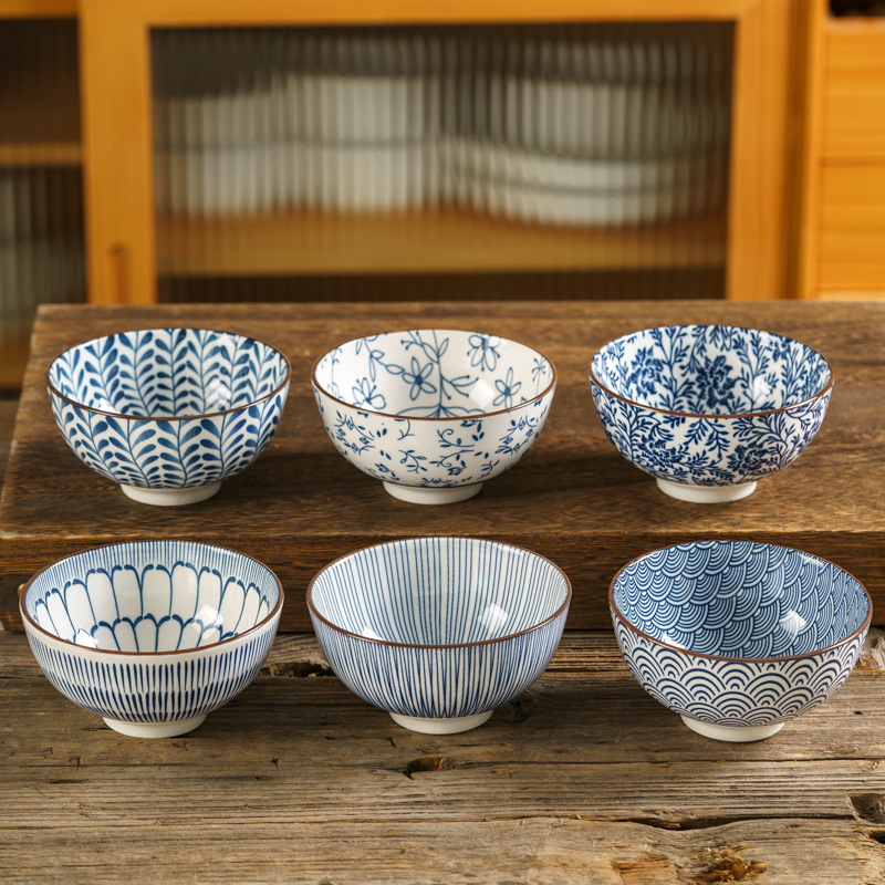 日本の丼釉下色陶器 4.5inch 食事ボウル家庭用小ボウルレトロ食器背の高いボウルライス B&