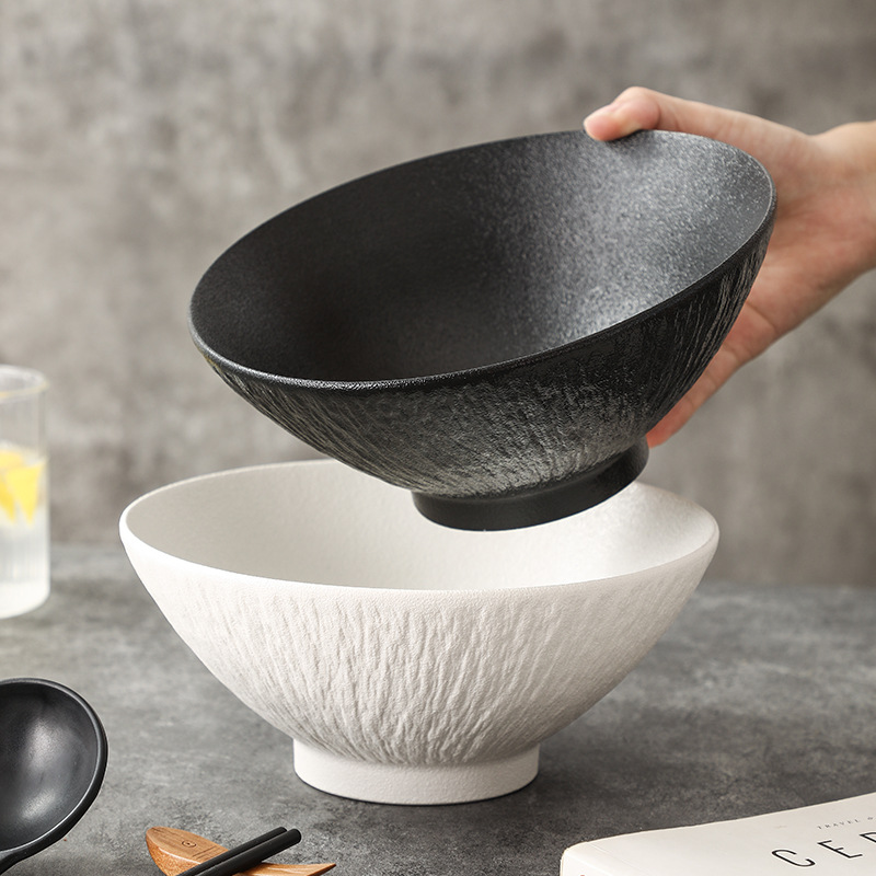 日本のラーメンボウル家庭用大型セラミックボウル黒笠ボウルインスタントラーメンボウル海ボウルスープボウルヌードルボウル商業B&なし