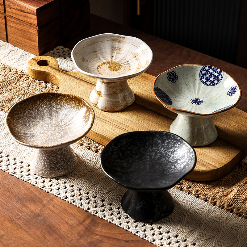 中国茶テーブル、茶皿、背の高い蝶皿、軽食、軽食皿、陶器のレトロな小皿、日本B&