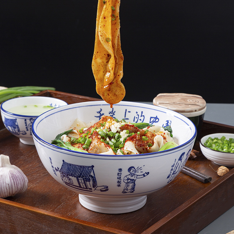 食器 業務用手巻き麺ボウル シチュー麺ボウル 陶器製 大型トランペットボウル 陝西省油麺大ボウル 牛肉麺 B&