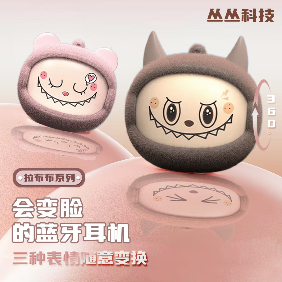 爆款拉布布卡通高颜值旋转变脸蓝牙耳机长续航降噪电竞国潮风耳机