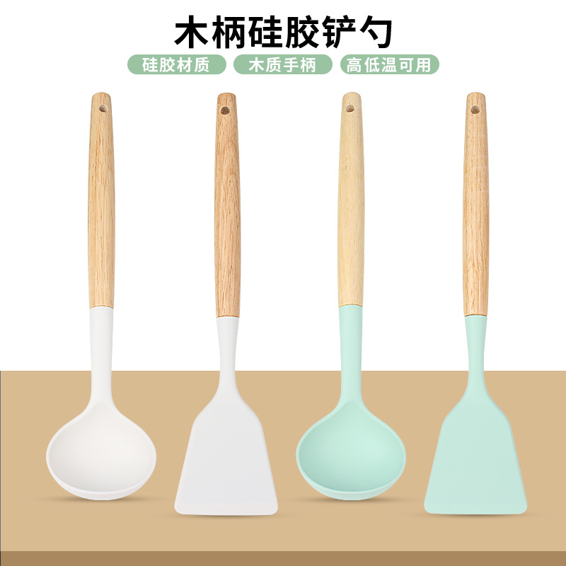 中型木柄シリコンスパチュラとスプーン家庭用ノンスティック特殊調理スパチュラとスプーンセットキッチン用品セット