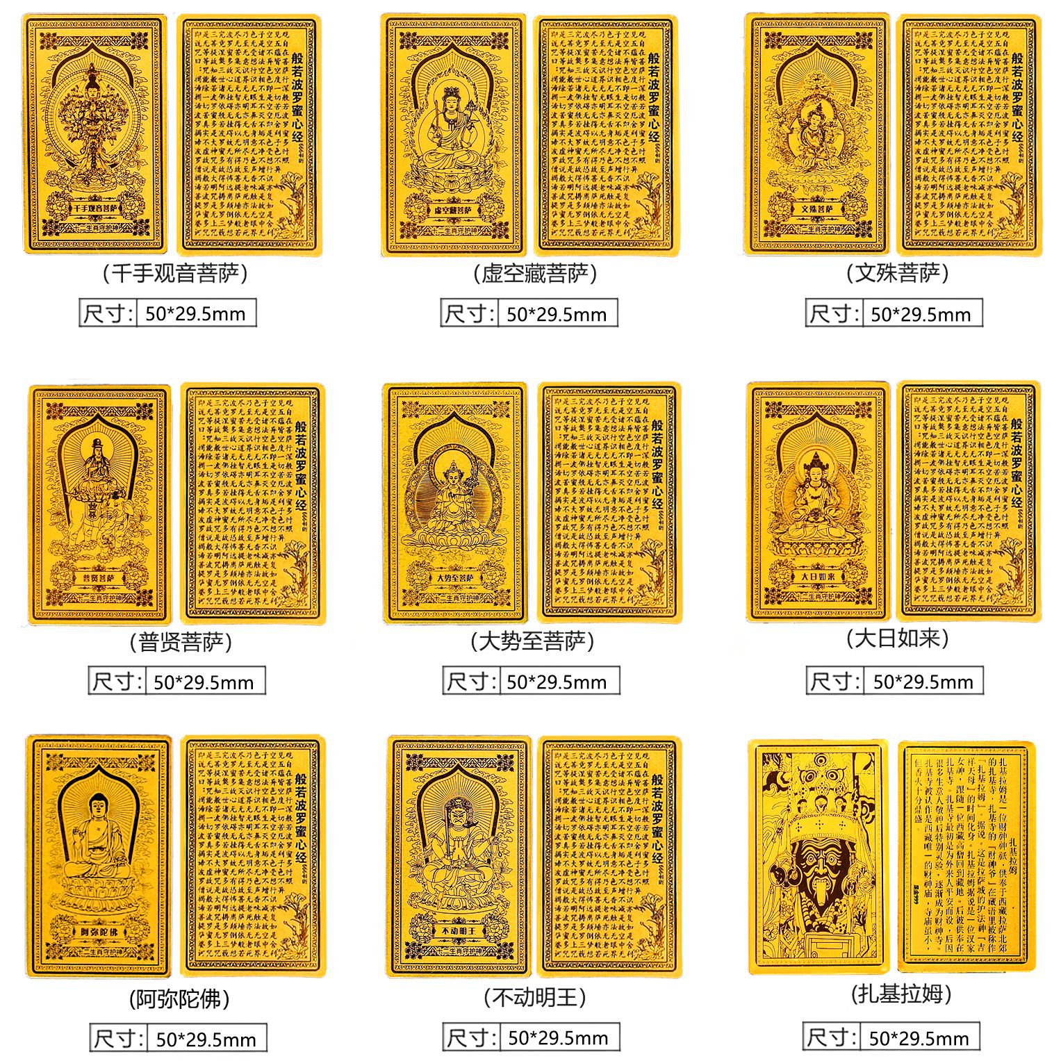 純金八守護神黄金携帯電話ステッカー仏像お守り金カード宗教ギフトカード干支守護神