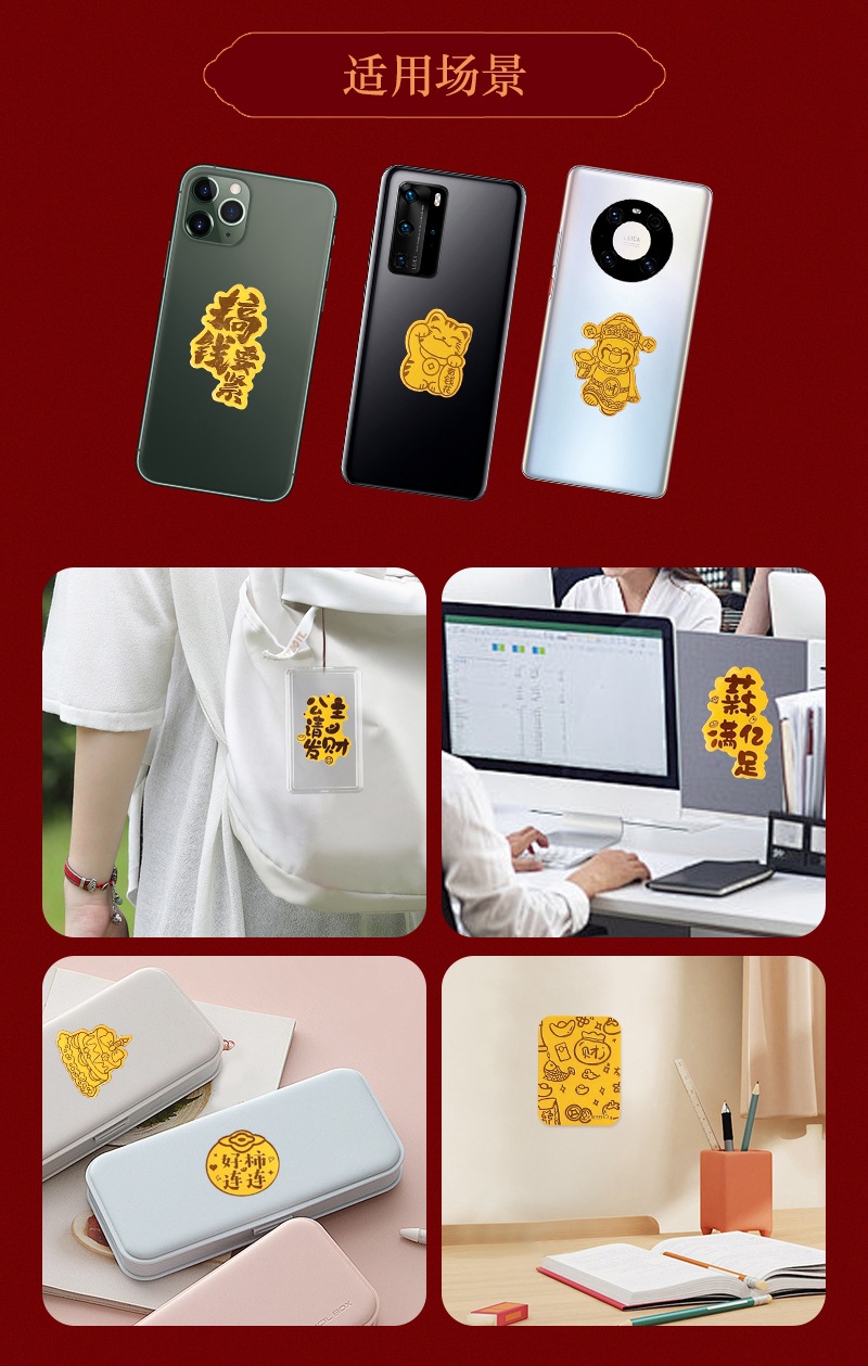 深圳水貝同型純金999暴富財庫招財猫携帯電話ステッカー金箔ステッカー人気商品金店ギフト