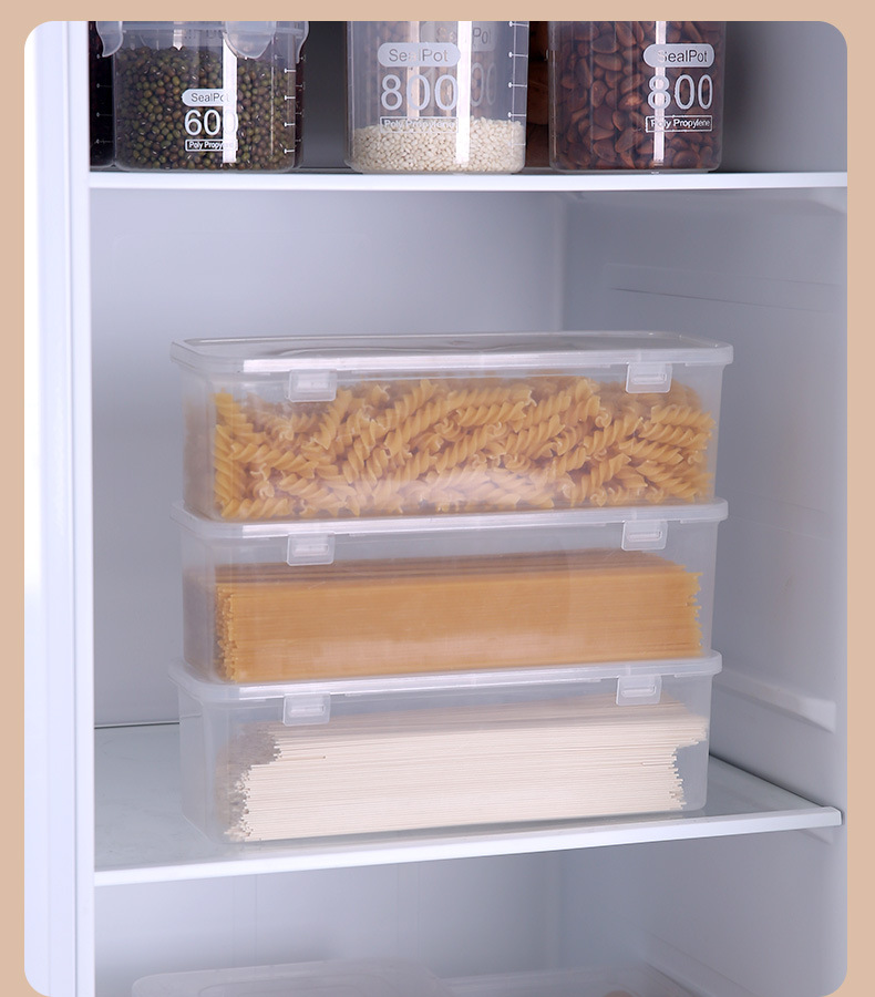 麺箱長方形プラスチック冷蔵庫食品保存ケース密封蓋付きキッチン雑穀食品そうめん収納ケース