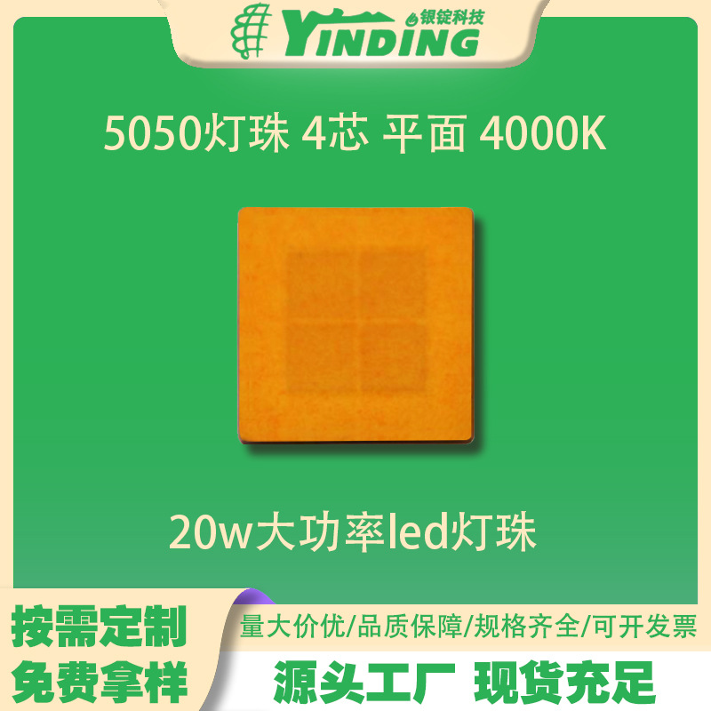 5050灯珠 4芯 20w大功率led灯珠 平面暖白光 汽车照明灯珠贴片式