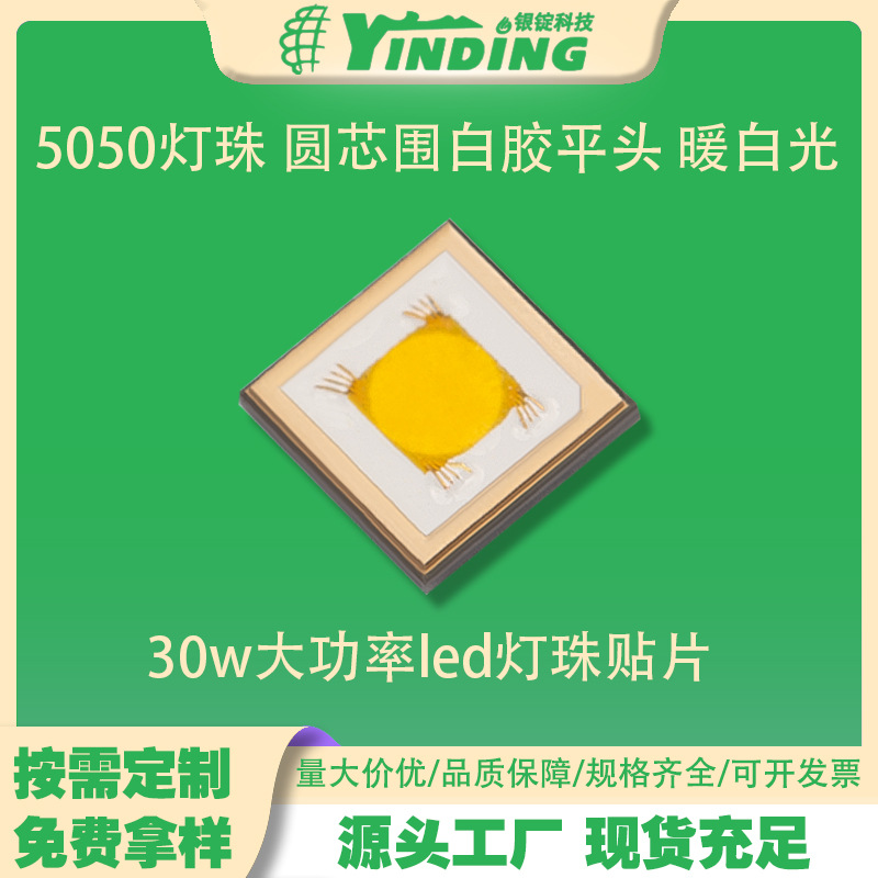 5050灯珠 圆芯围白胶平头 暖白光 30w大功率led灯珠贴片 舞台照明