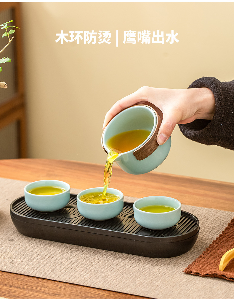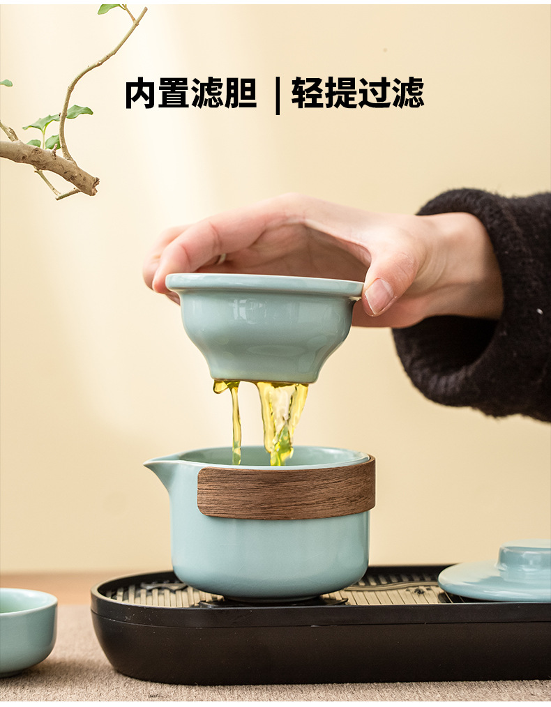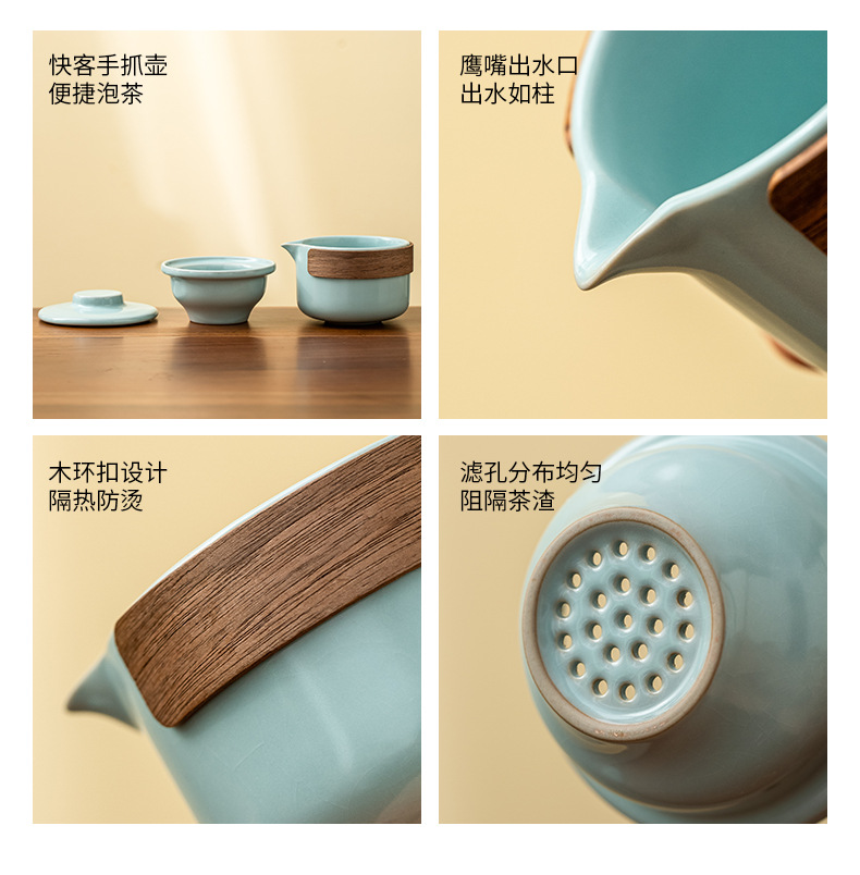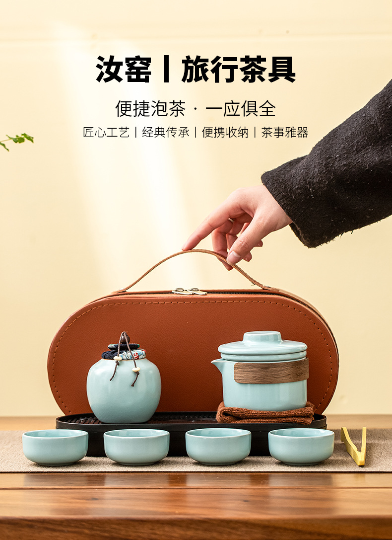屋外旅行茶器ポータブル汝窯万花陶磁器茶器セット汝磁器工夫茶杯イベントプレゼント