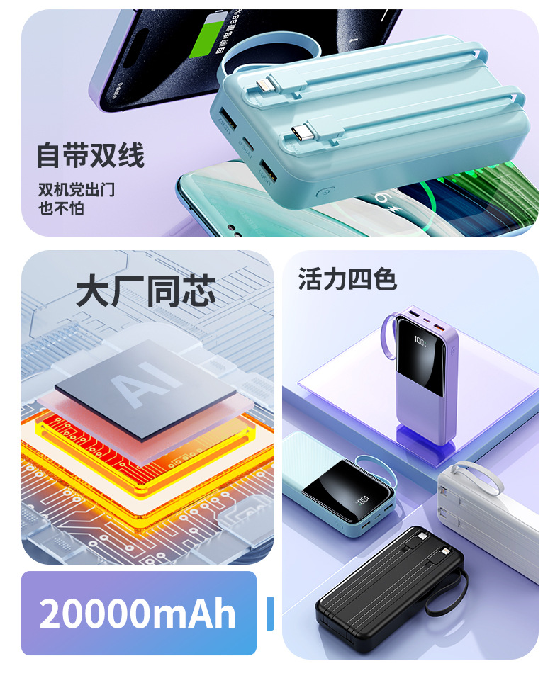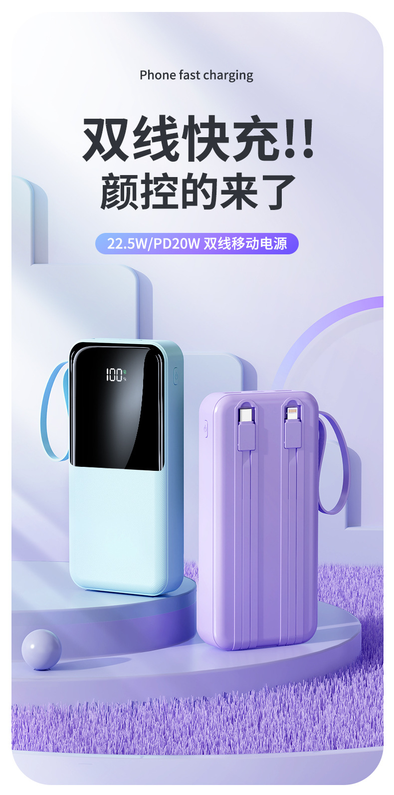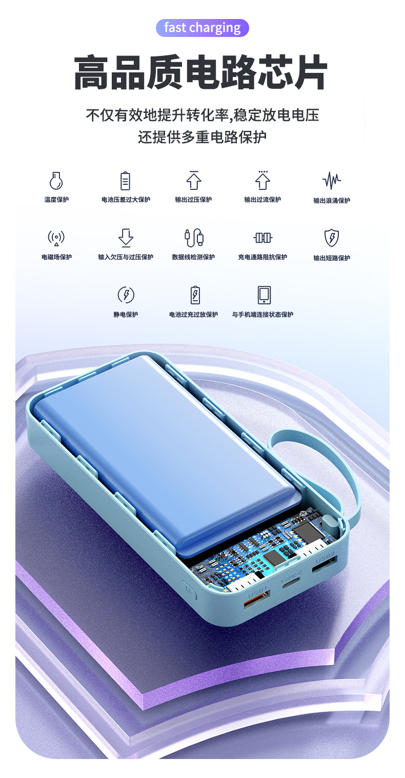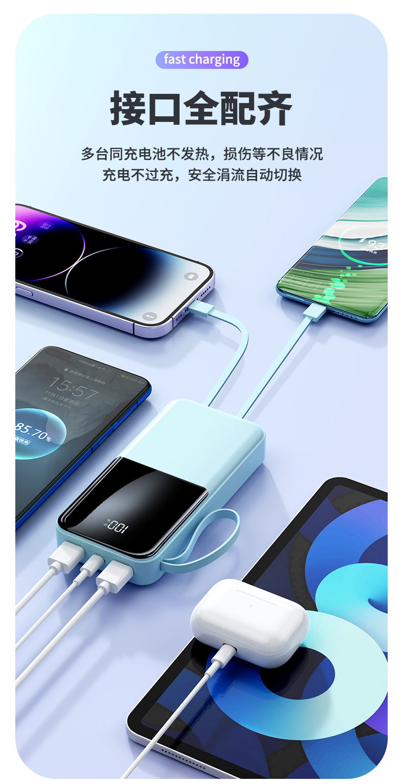 简介:自带TYPE-C线快充输出苹果线2.1A输出颜色:经典黑优雅白绿色紫色