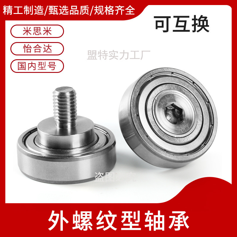 外螺纹轴承带304不锈钢螺杆轴承轮轴杆螺丝轨道小滑轮导向轮轴承