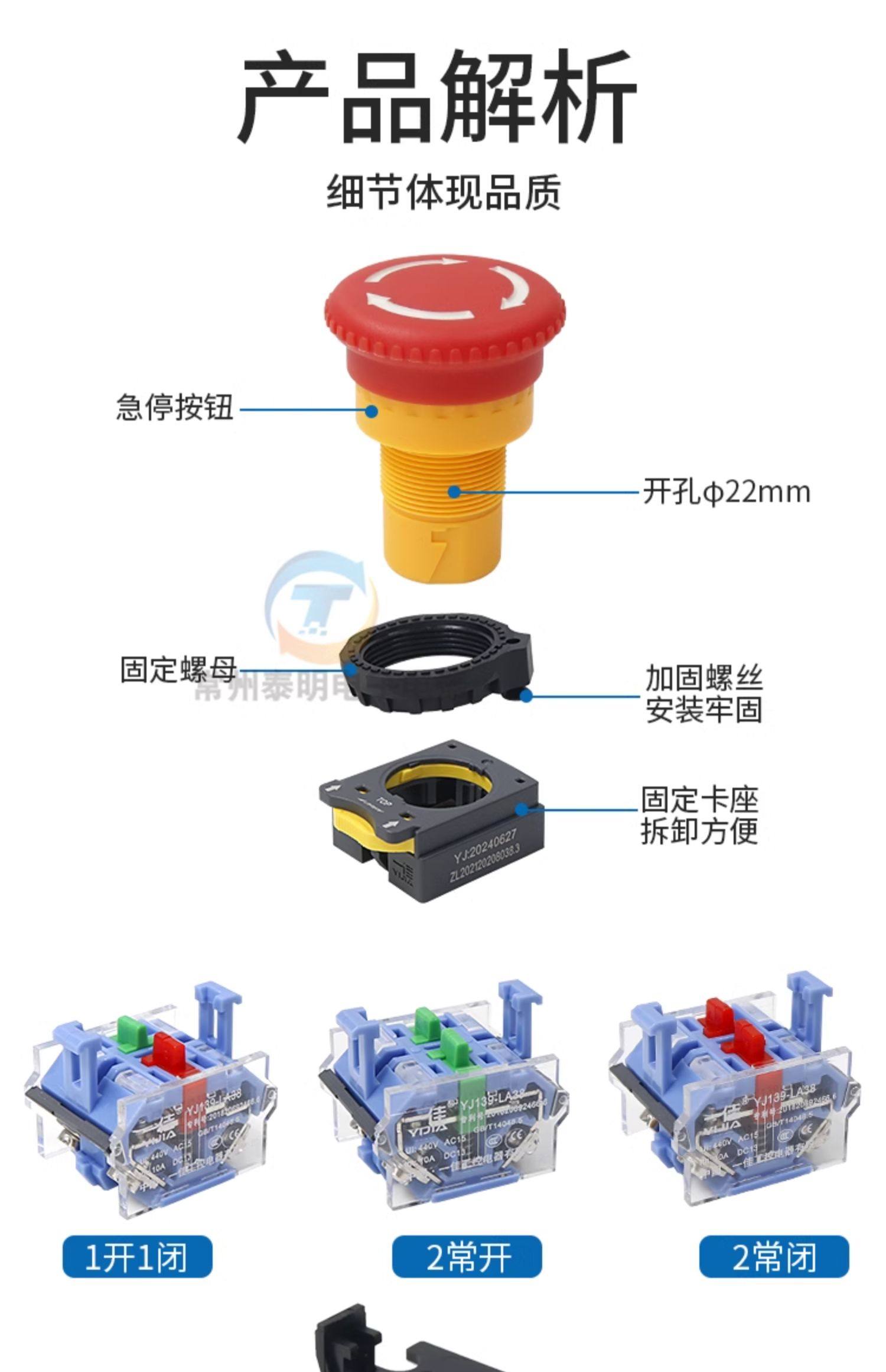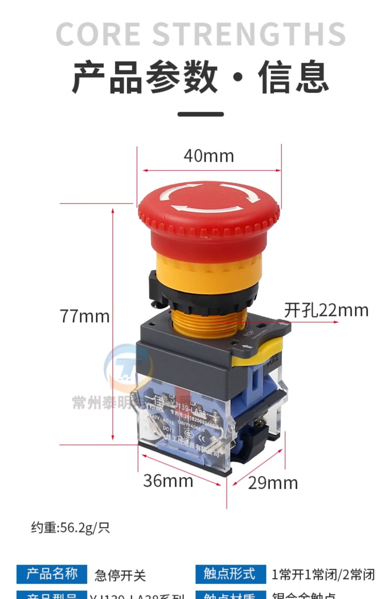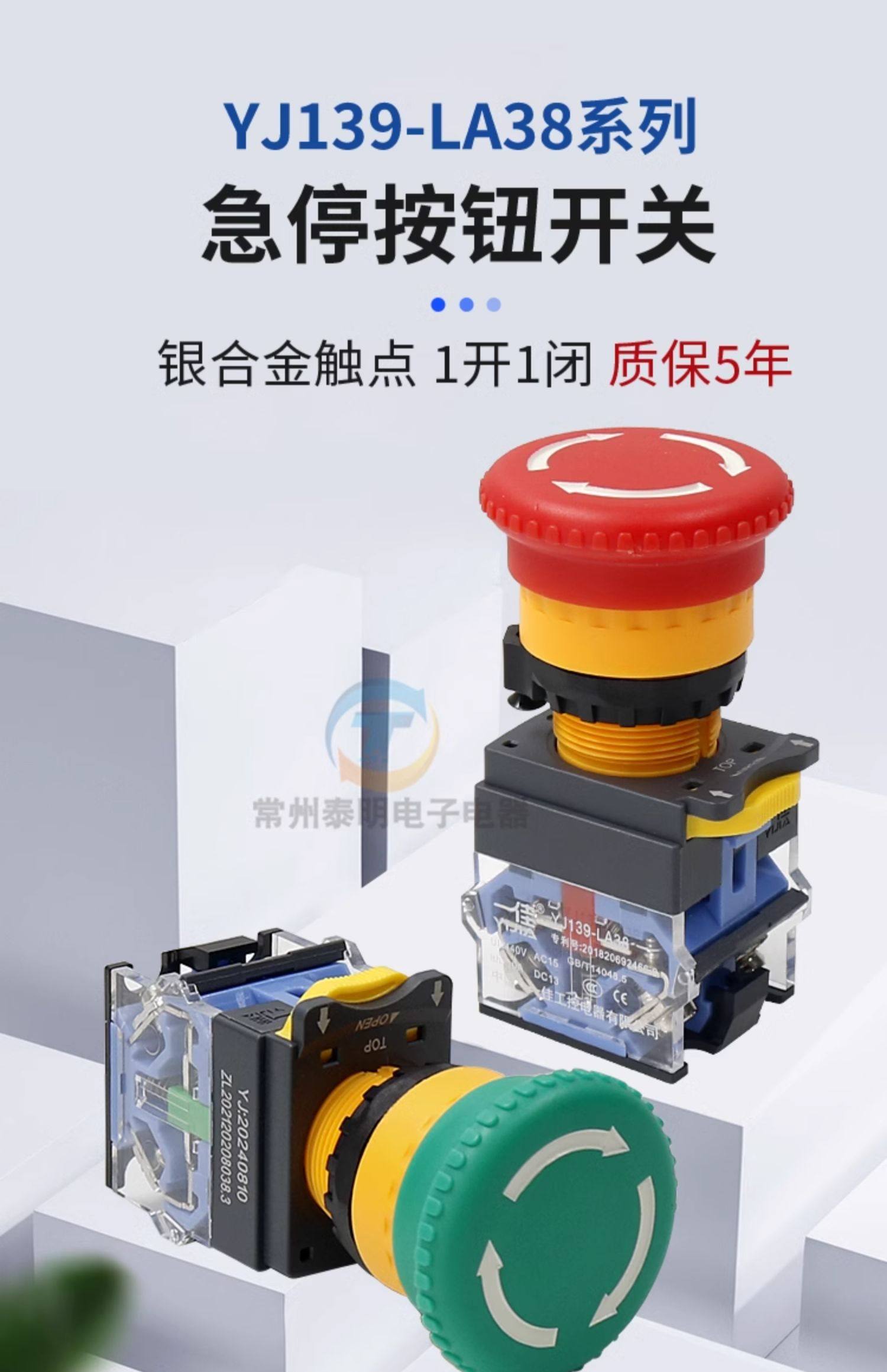 一佳非常停止ボタンスイッチ発停LA38-11ZS非常停止エレベータの底穴押しロック回転式22MM